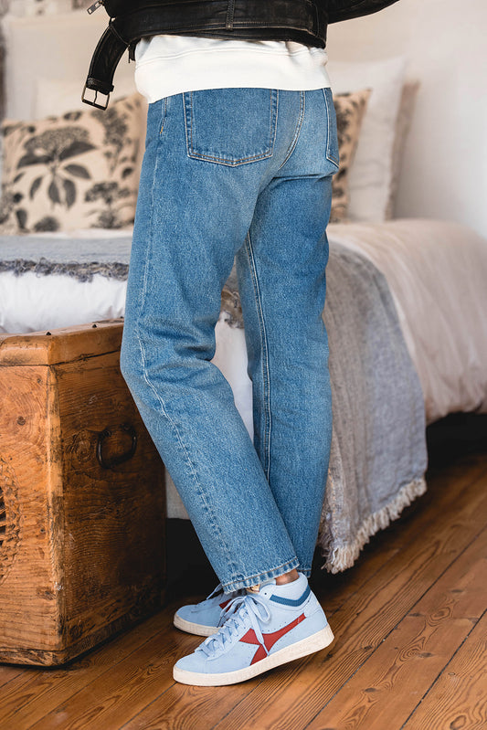 Les jeans femme Acquaverde se distinguent par leur qualité de confection et leurs finitions haut de gamme. Les toiles proviennent de manufactures italiennes et japonaises reconnues, tandis que la production est réalisée en Europe pour un rendu impeccable. La marque cultive une approche éco-responsable avec l’utilisation de cotons certifiés et de teintures végétales françaises.