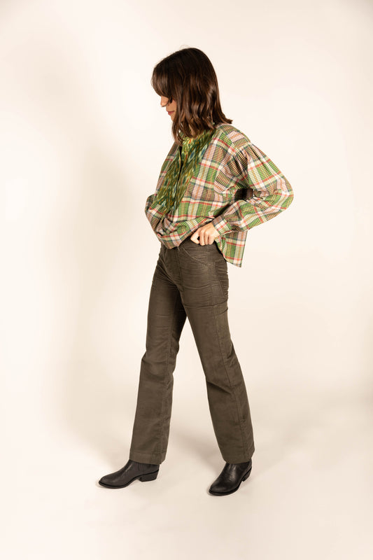 Avec sa texture velours côtelé et sa coupe ajustée, le Cara associe confort et sophistication. Un essentiel chic pour la saison froide, parfait avec une chemise blanche ou un pull oversize.