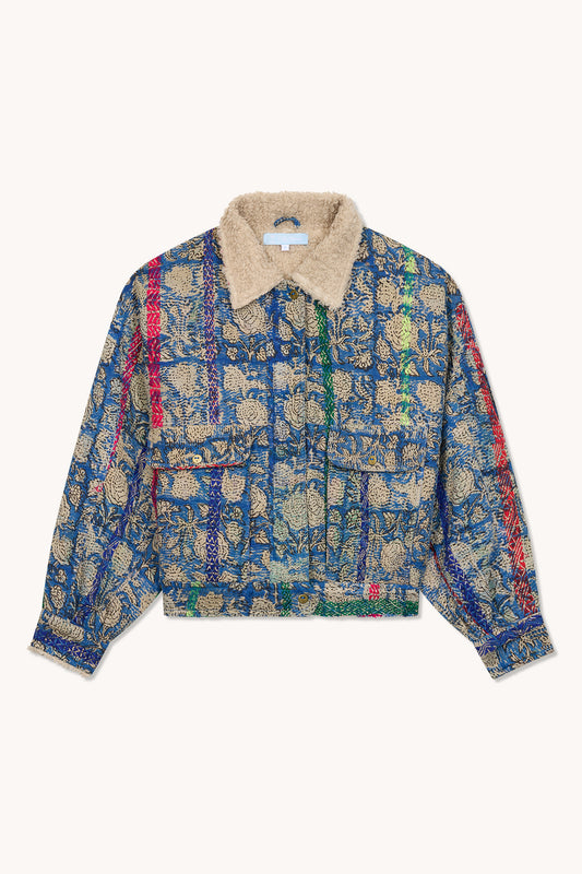 Nous proposons également des blousons femme en Khanta, réalisés à partir de textiles traditionnels indiens cousus main. Chaque pièce est unique, avec un motif, une texture et une patine qui racontent une histoire. Ces créations exclusives mêlent artisanat, caractère et authenticité pour un style véritablement singulier.