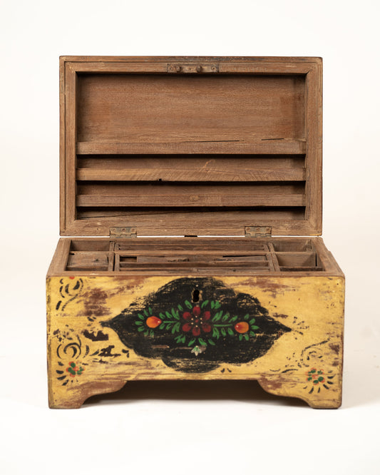 L'ÎLE BLEUE - COFFRE JAUNE PEINT À LA MAIN