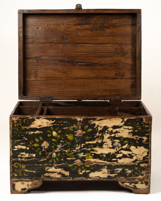 L'ÎLE BLEUE - COFFRE VERT PEINT À LA MAIN