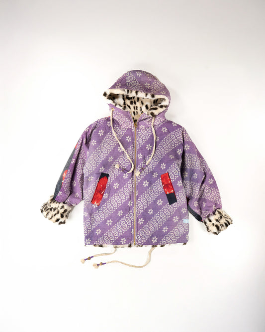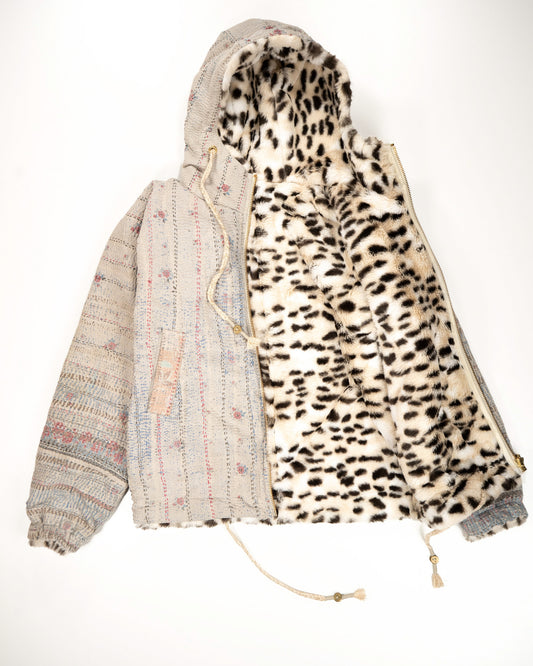 L’ÎLE BLEUE - HOODY FOURRÉ LÉOPARD EN KANTHA COULEUR 26