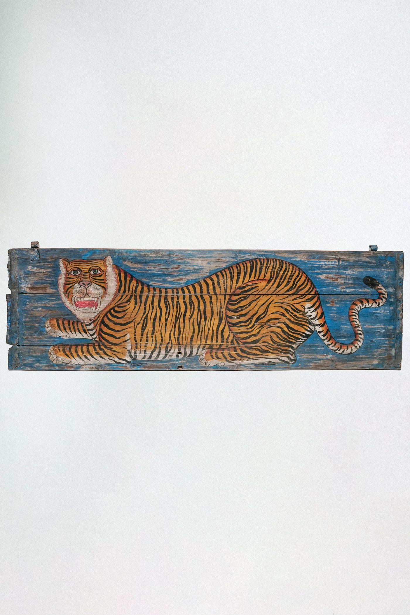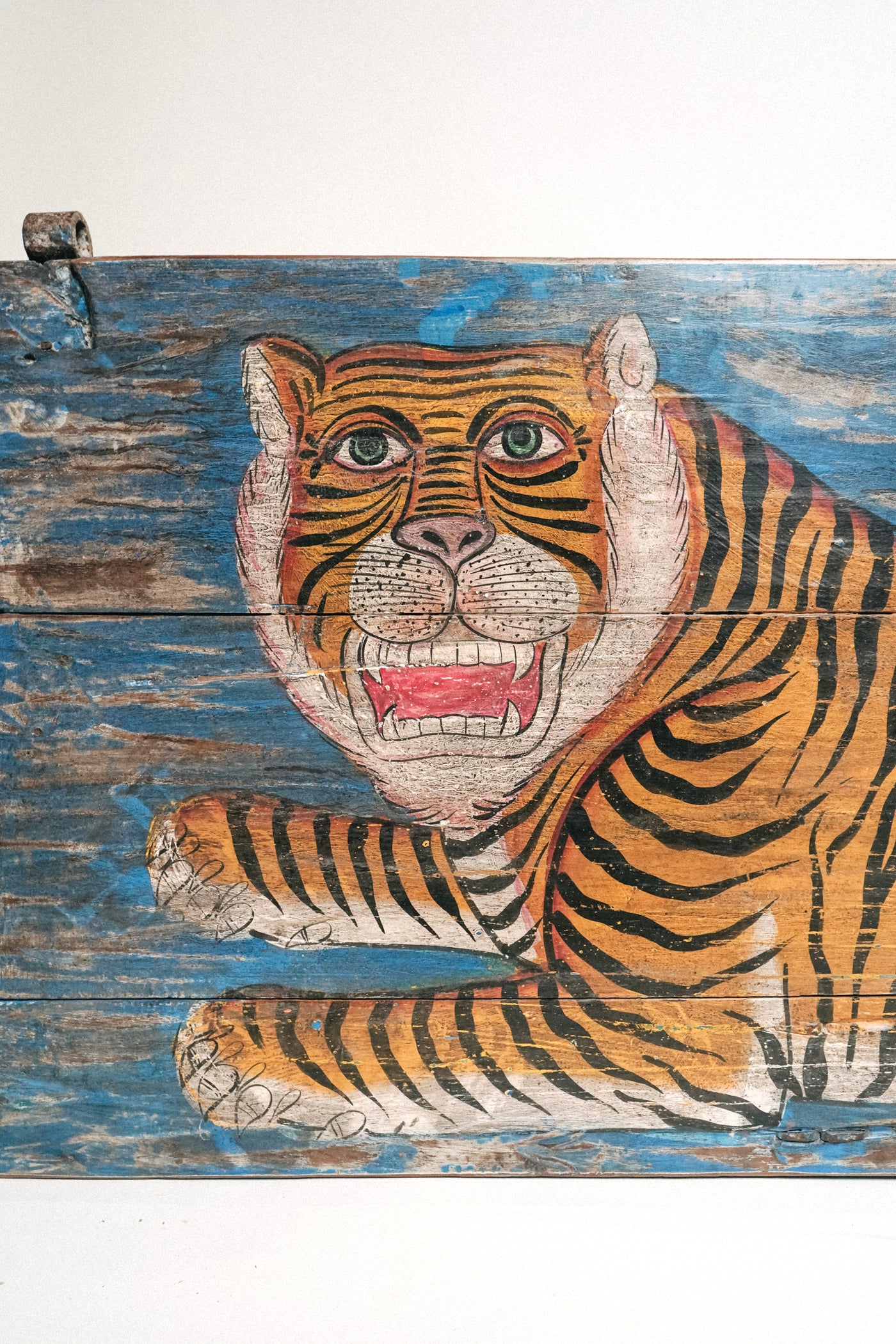 L'ÎLE BLEUE - PEINTURE SUR PORTE ANCIENNE TIGRE BLEU