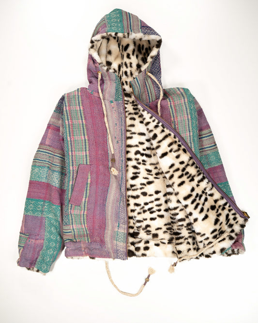 L’ÎLE BLEUE - HOODY FOURRÉ LÉOPARD EN KANTHA COULEUR 23