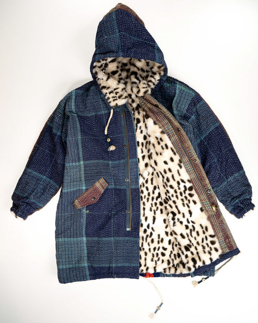 L'ÎLE BLEUE - MANTEAU FOURRÉ LÉOPARD EN KANTHA COULEUR 4