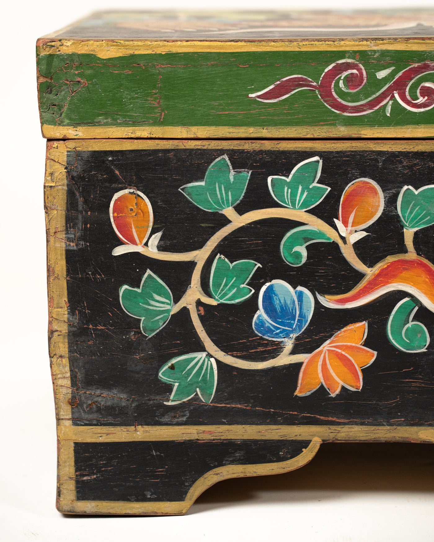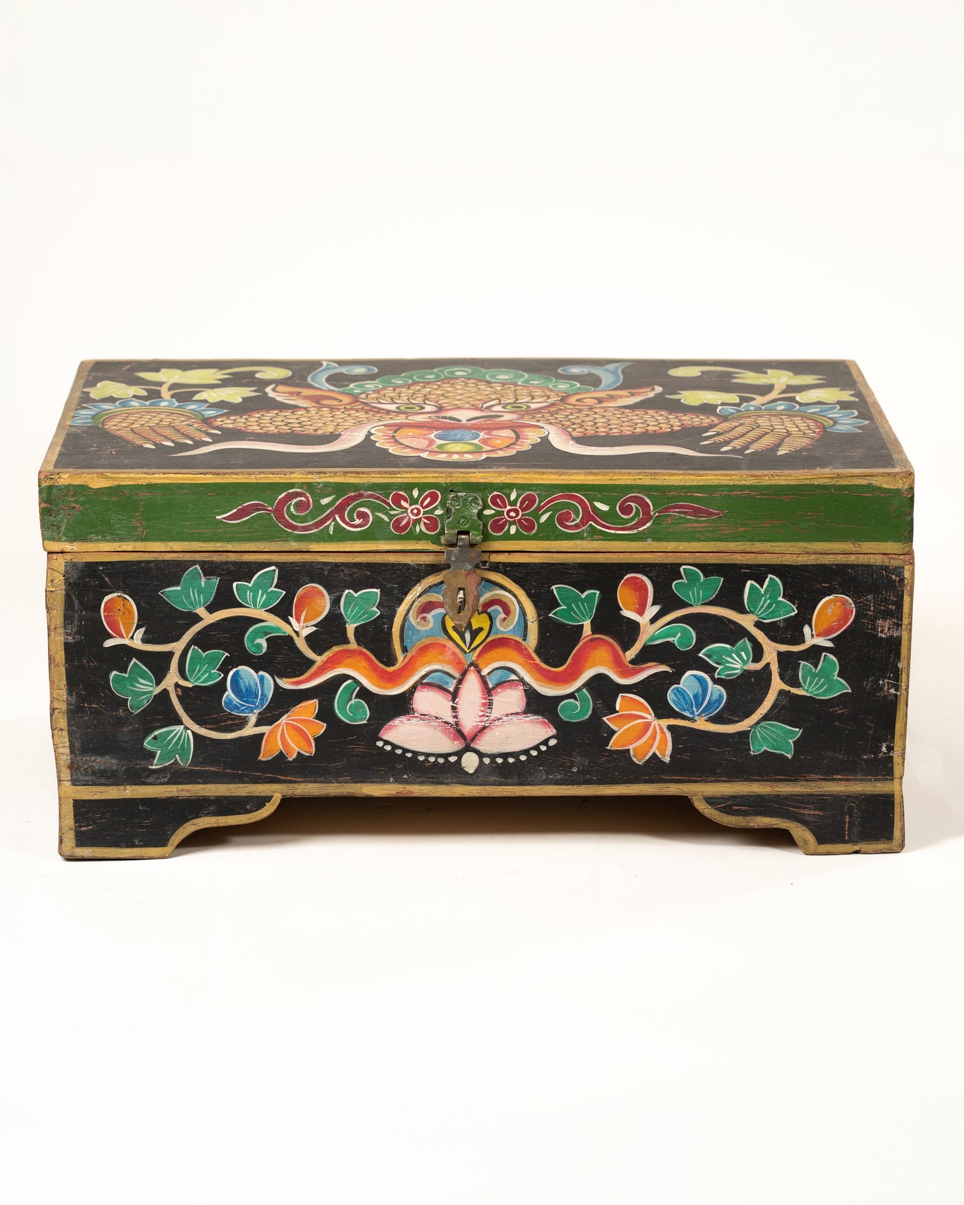 L'ÎLE BLEUE - COFFRE NOIR PEINT À LA MAIN
