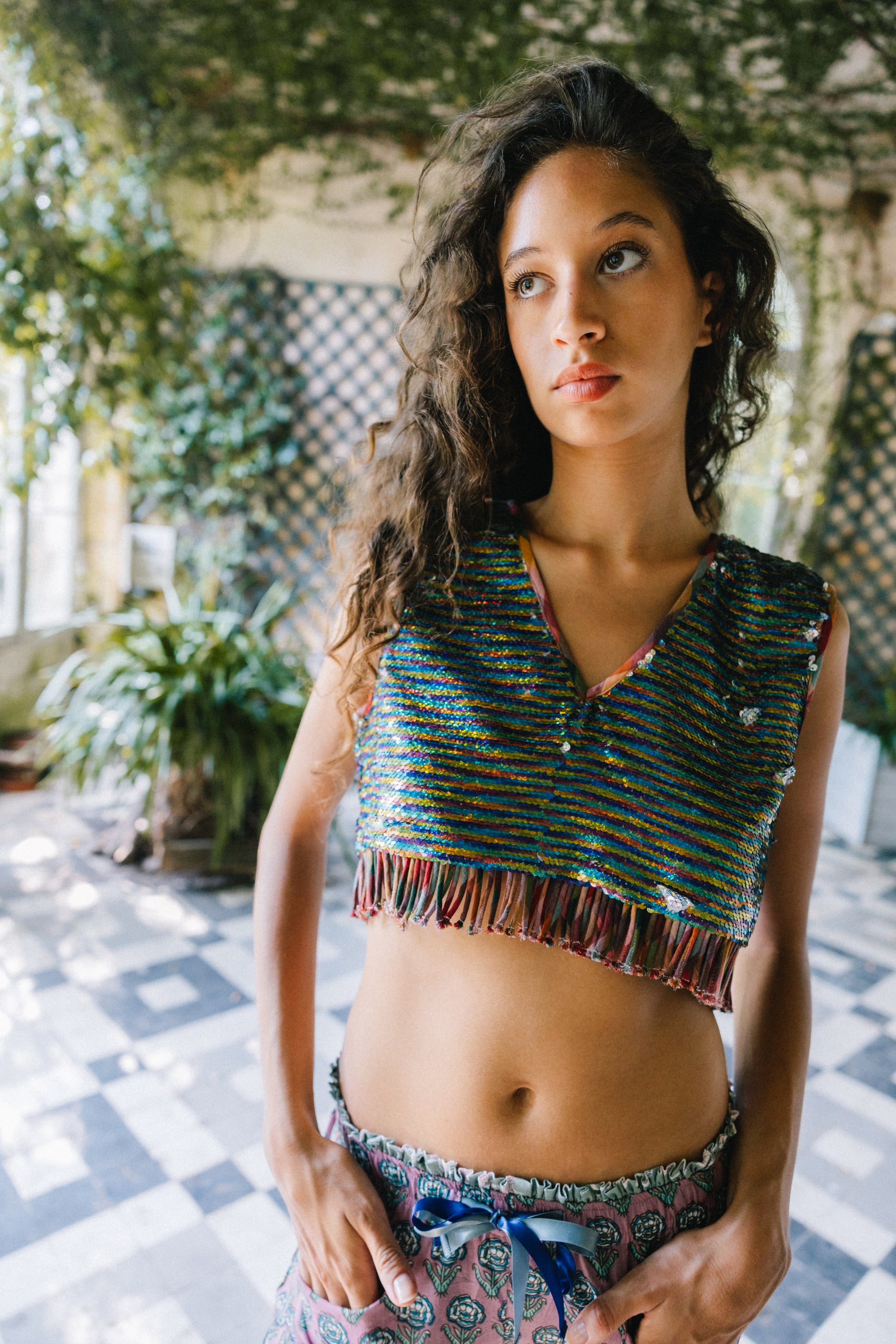 La dernière nouveauté de la saison, le crop top Rani en 100% sequins.