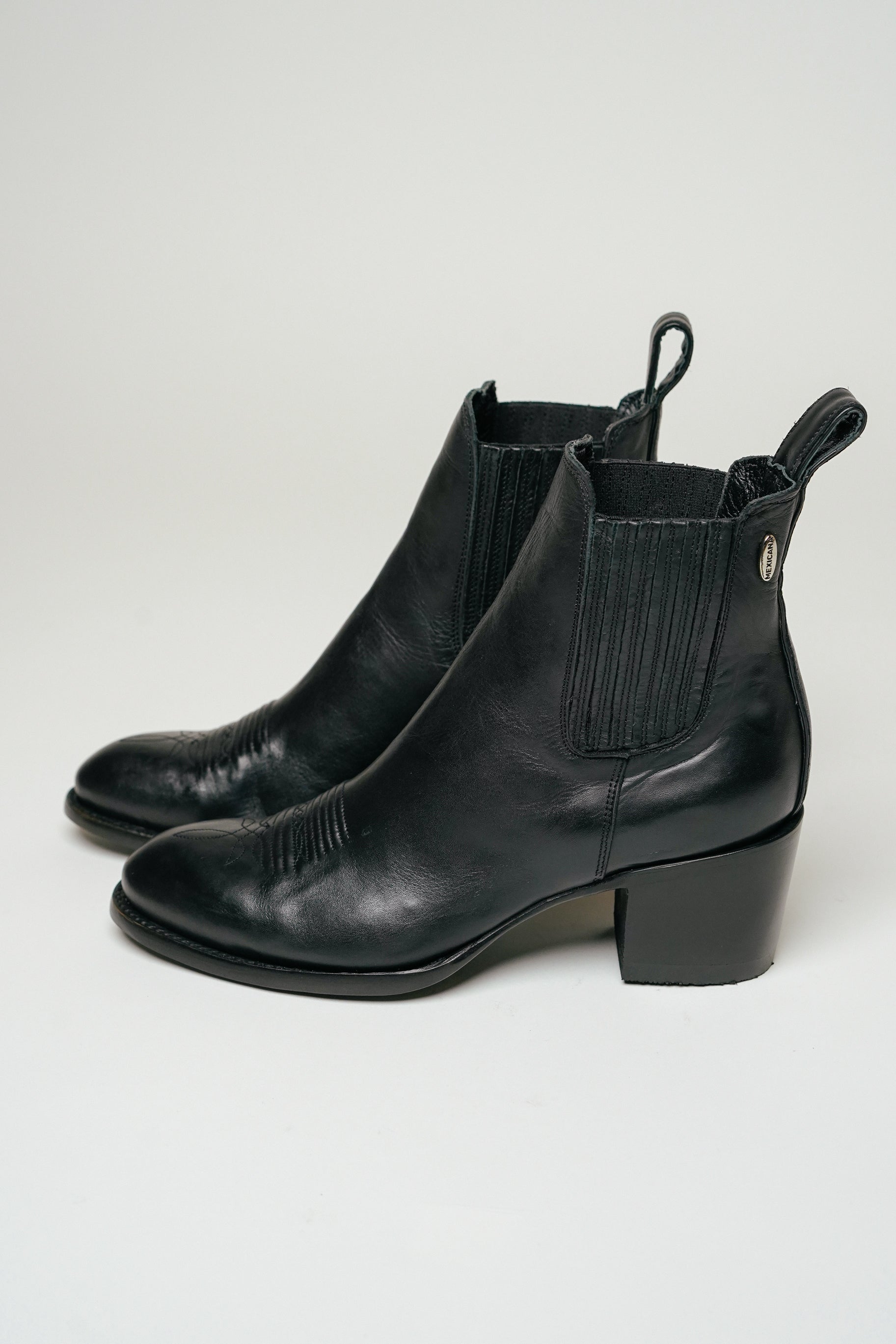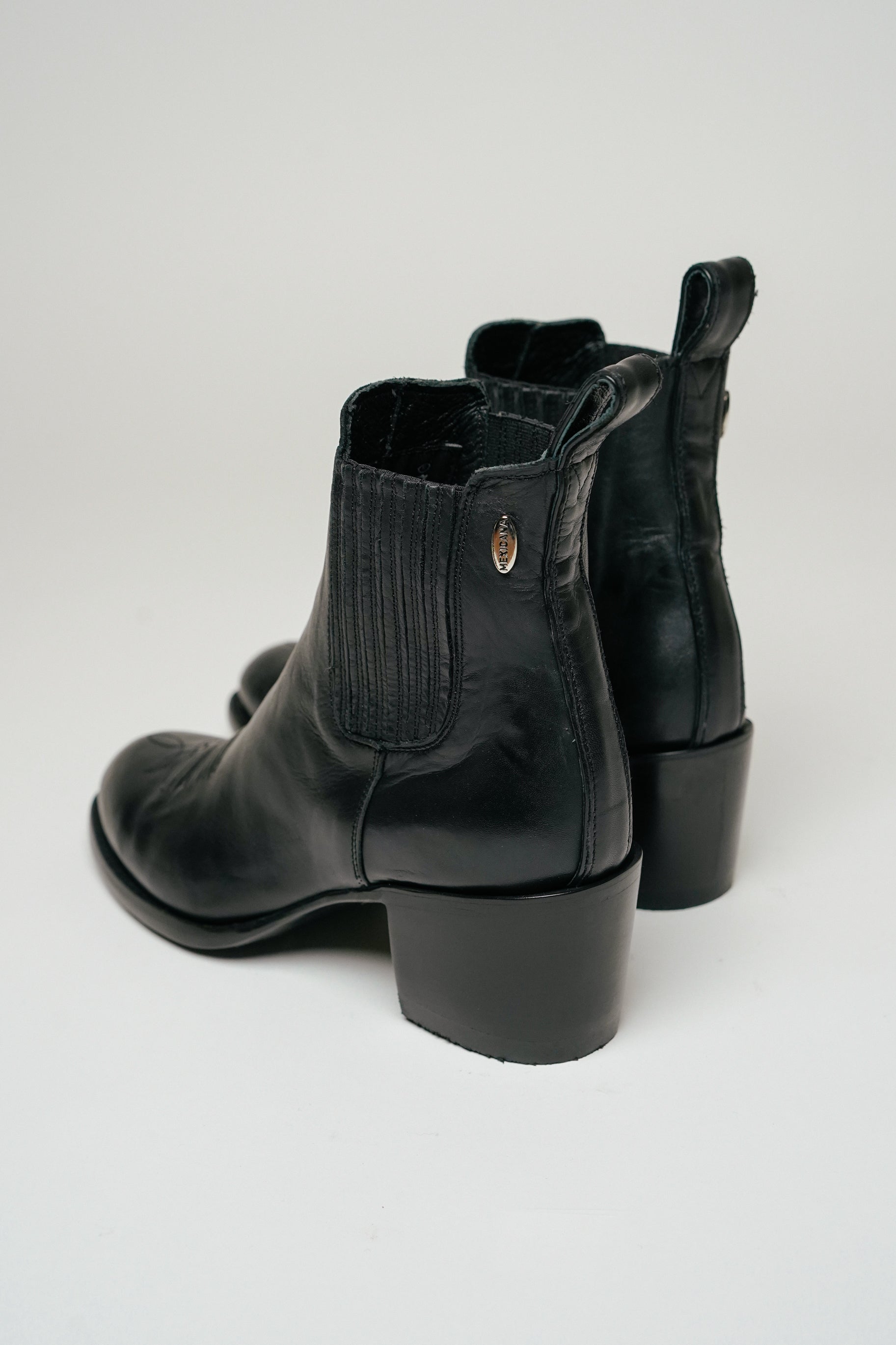 Die Estudio Bis Black-Stiefeletten mit runder Zehenpartie verfügen über seitliche Gummizüge, die das Anziehen erleichtern.