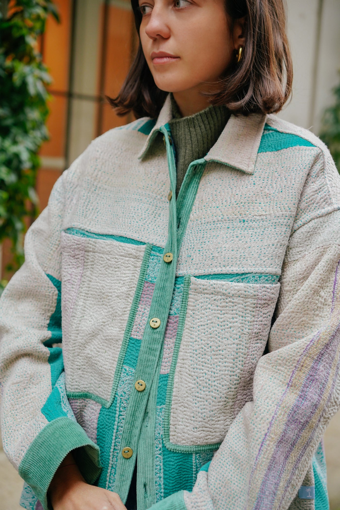THE BLUE ISLAND - Kantha Green Corduroy Jacket