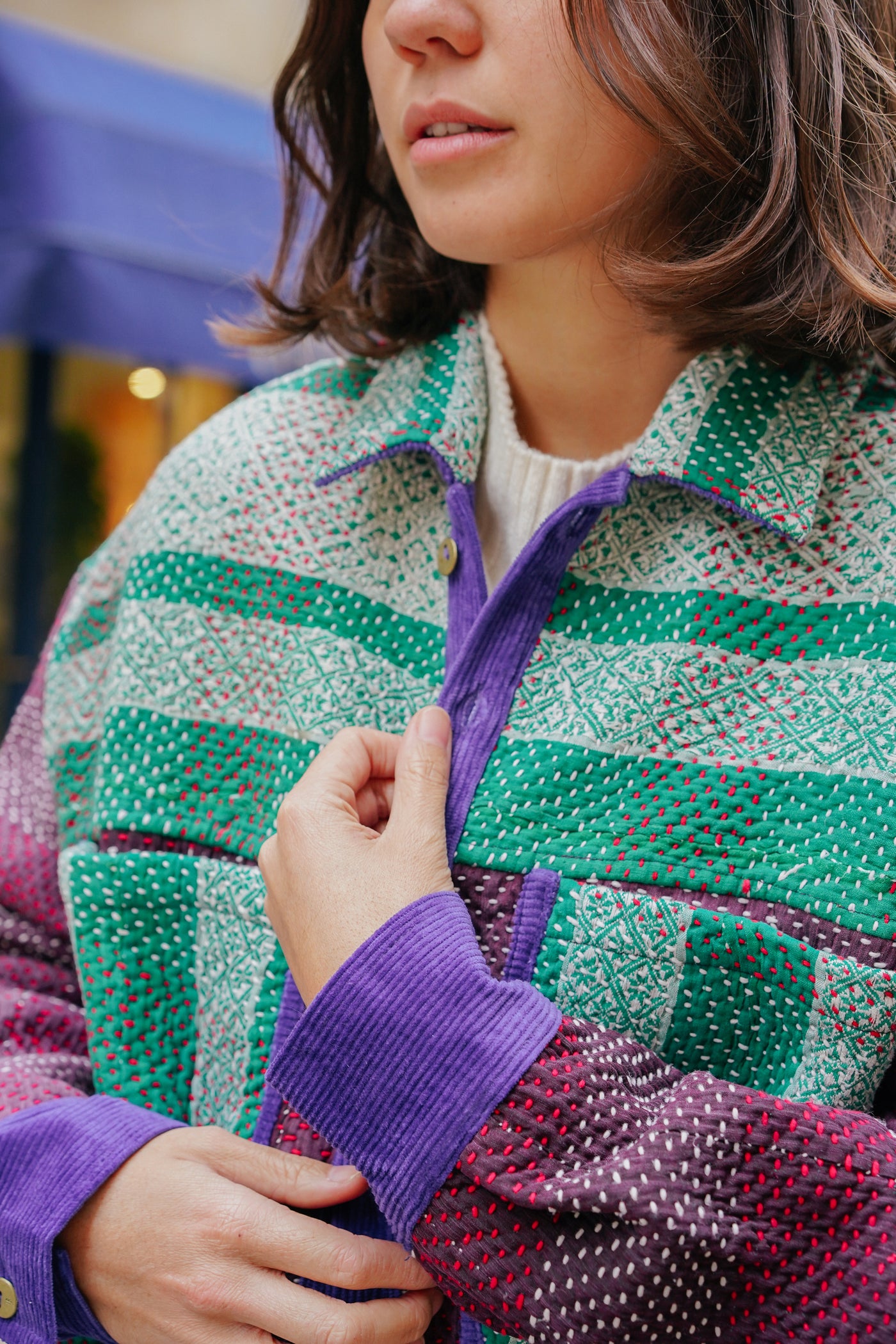 THE BLUE ISLAND - Kantha Purple Corduroy Galicha Jacket