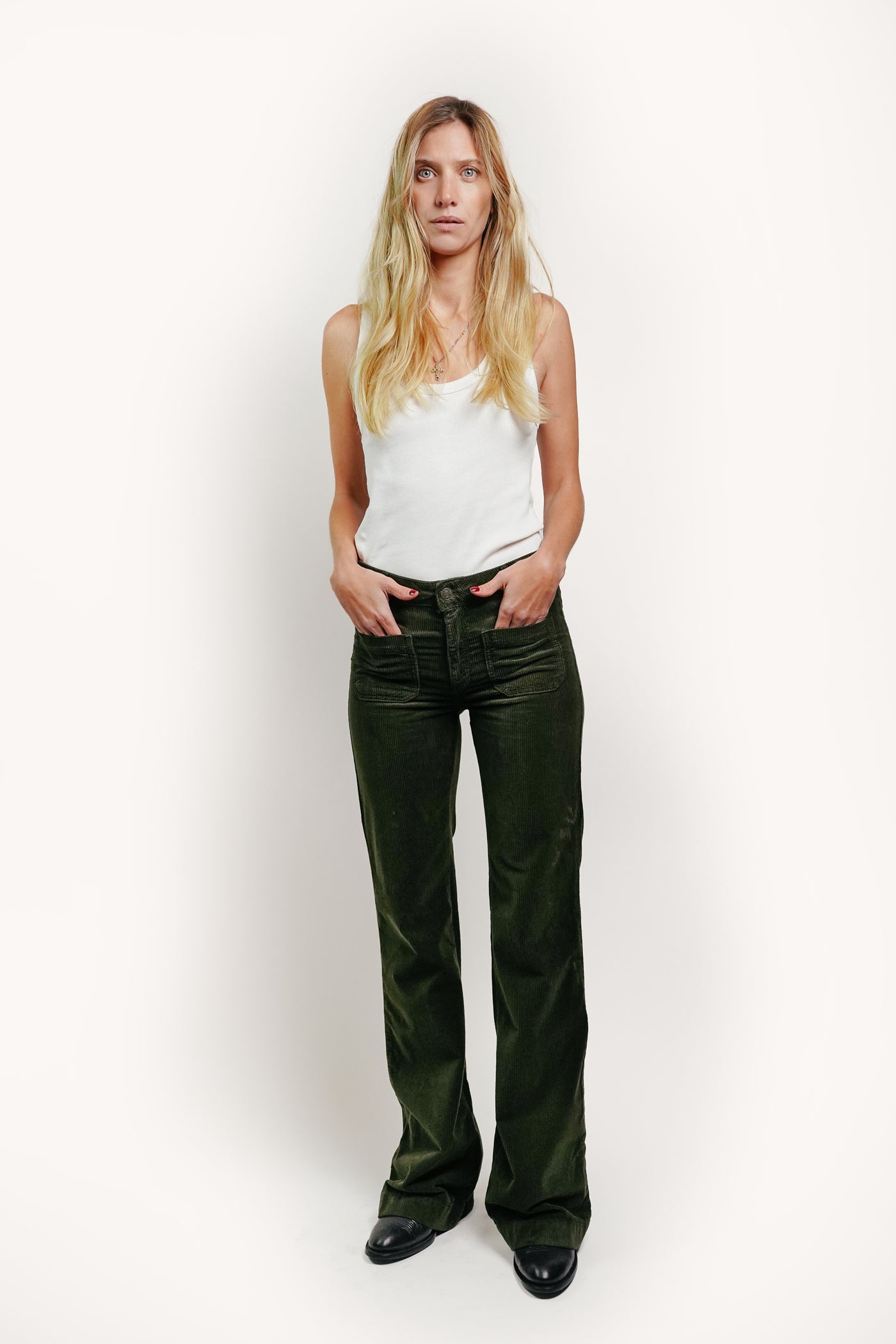 ACQUAVERDE - CHARLOTTE FOREST GREEN VELVET TROUSERS