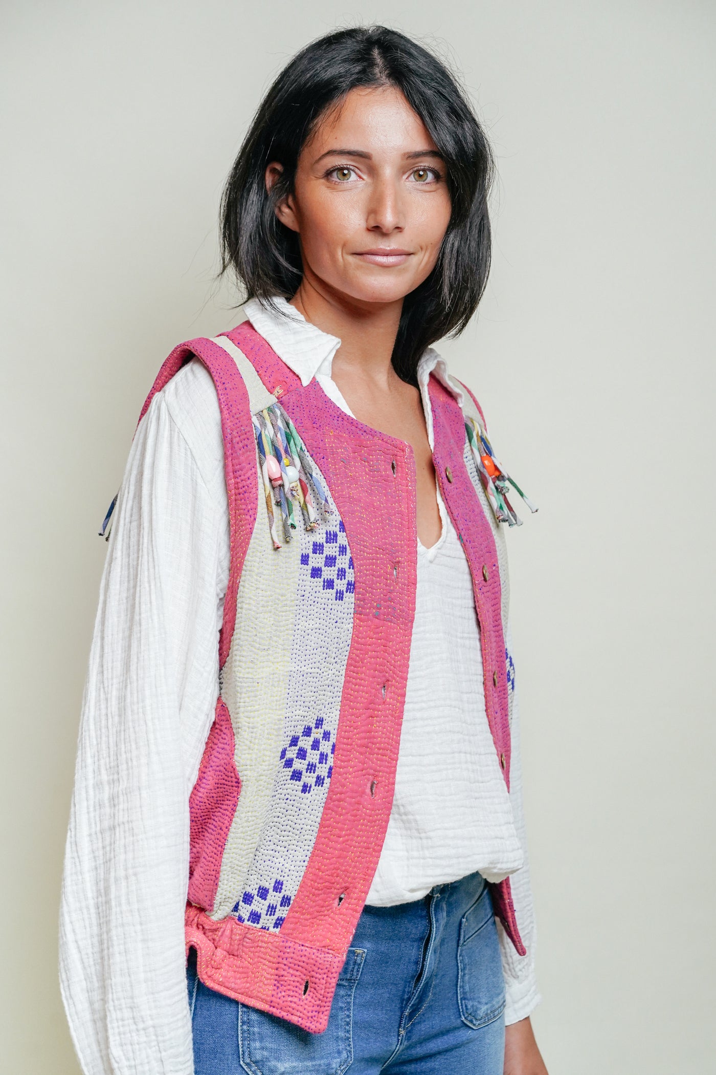 THE BLUE ISLAND - Kantha Vest - Fringes