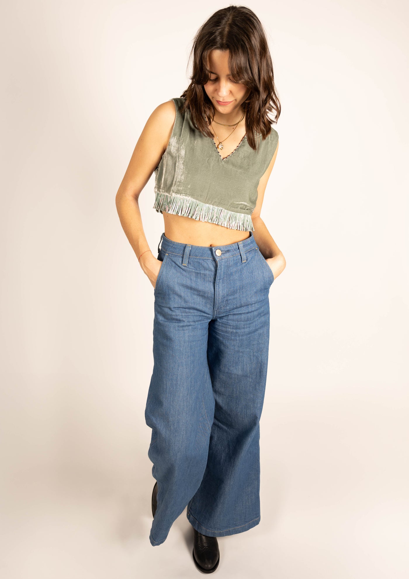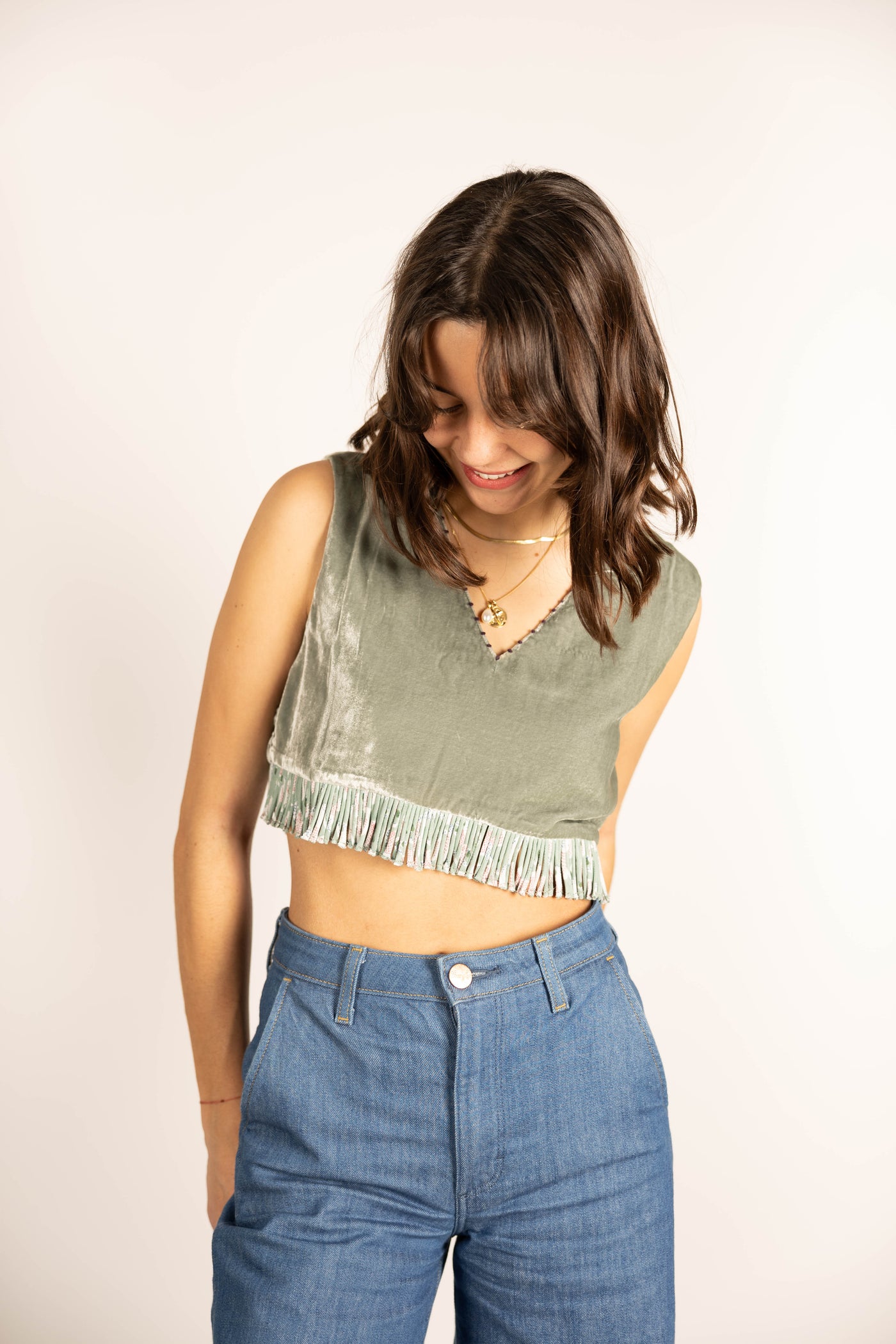 L'ÎLE BLEUE - Top Rani Silk Velvet Light Grey