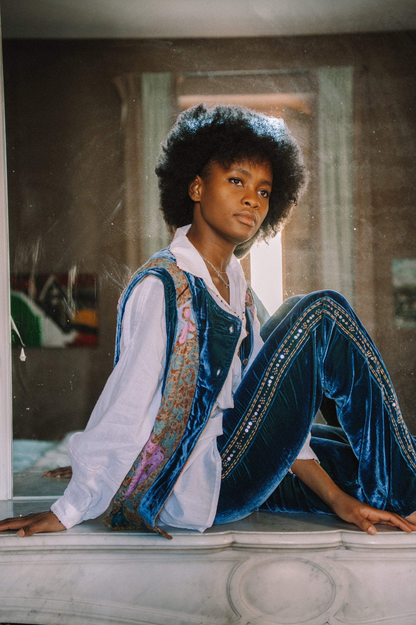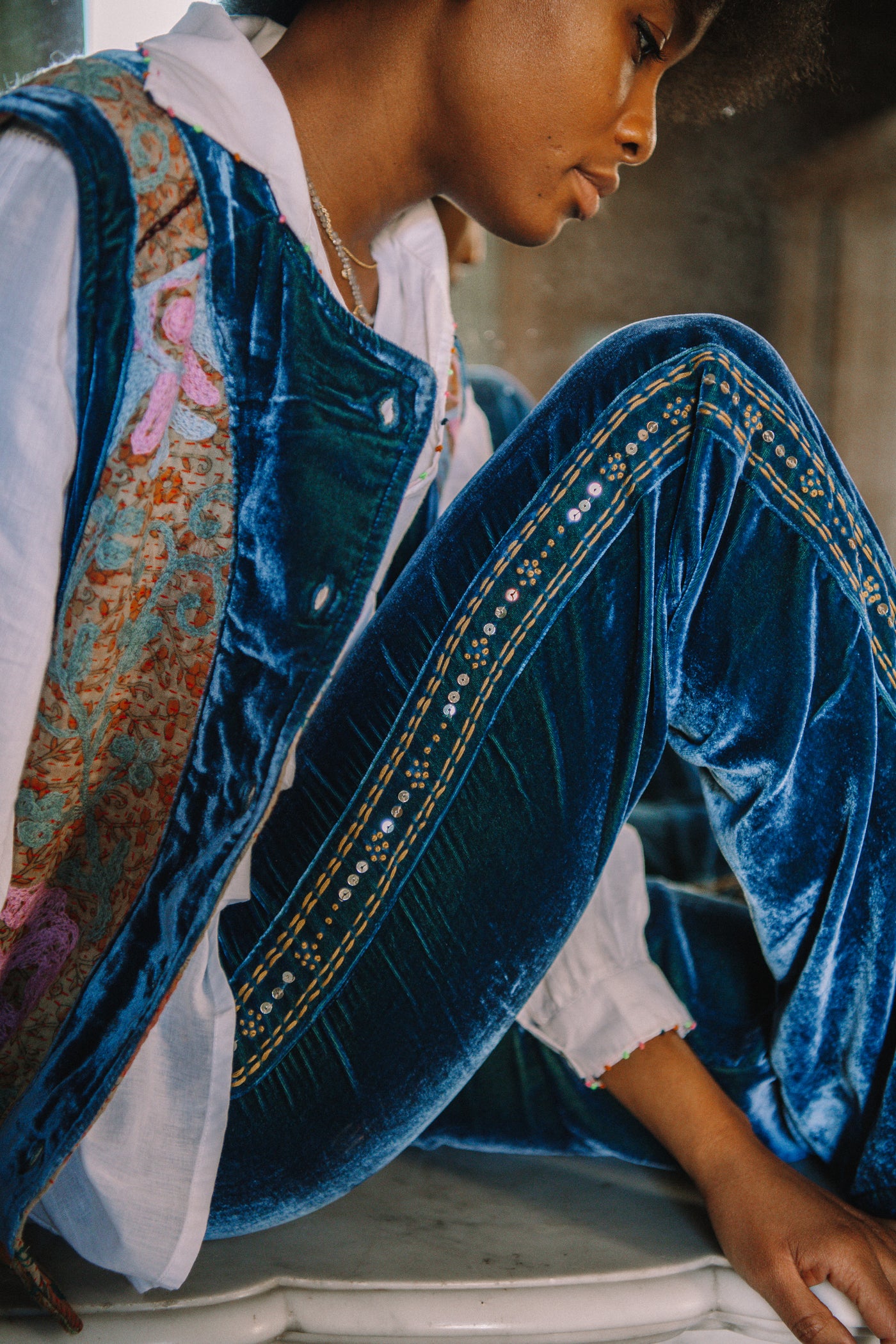 THE BLUE ISLAND - Sayani Embroidery Bright Blue Trousers