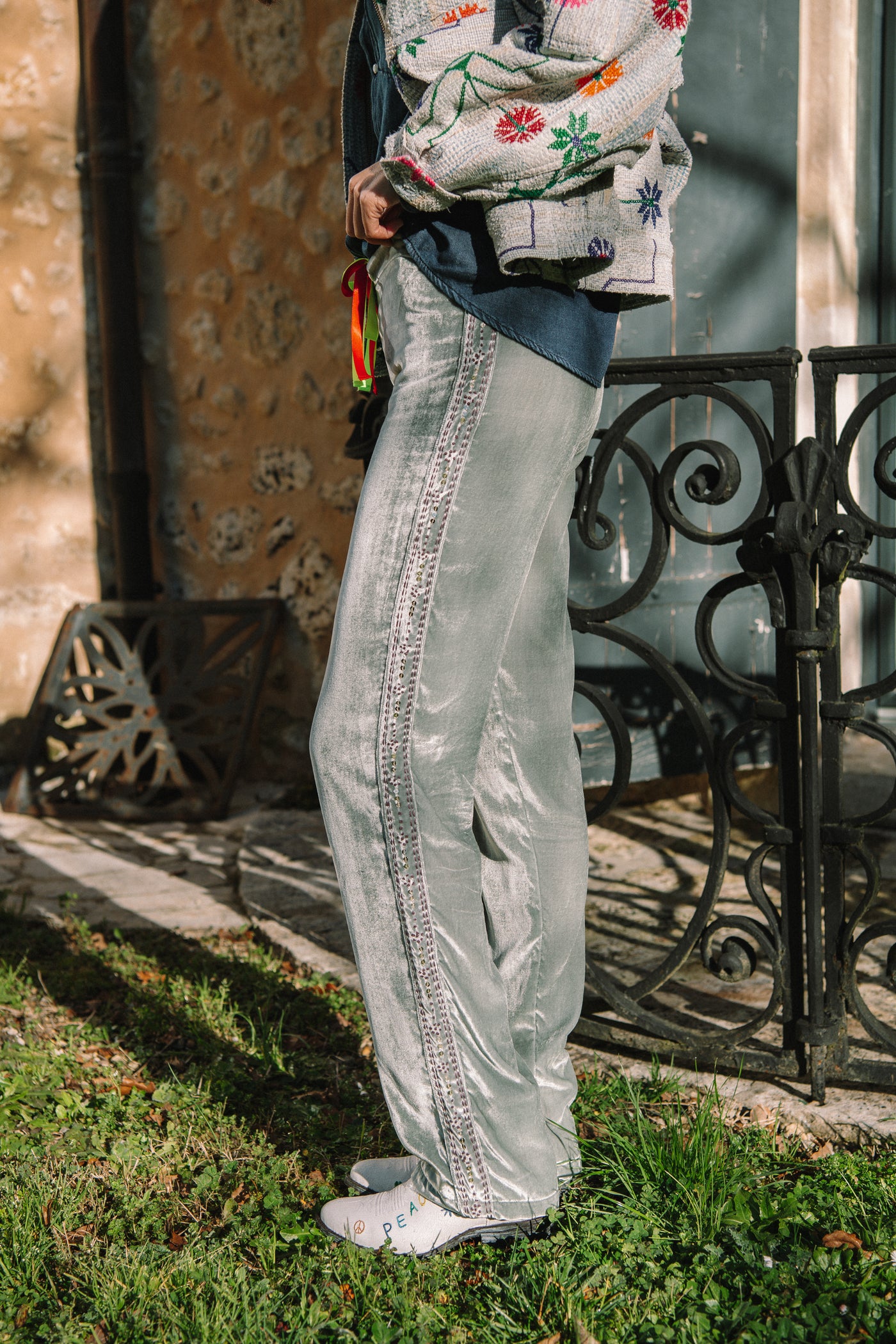 THE BLUE ISLAND - Sayani Embroidery Trousers Light Grey