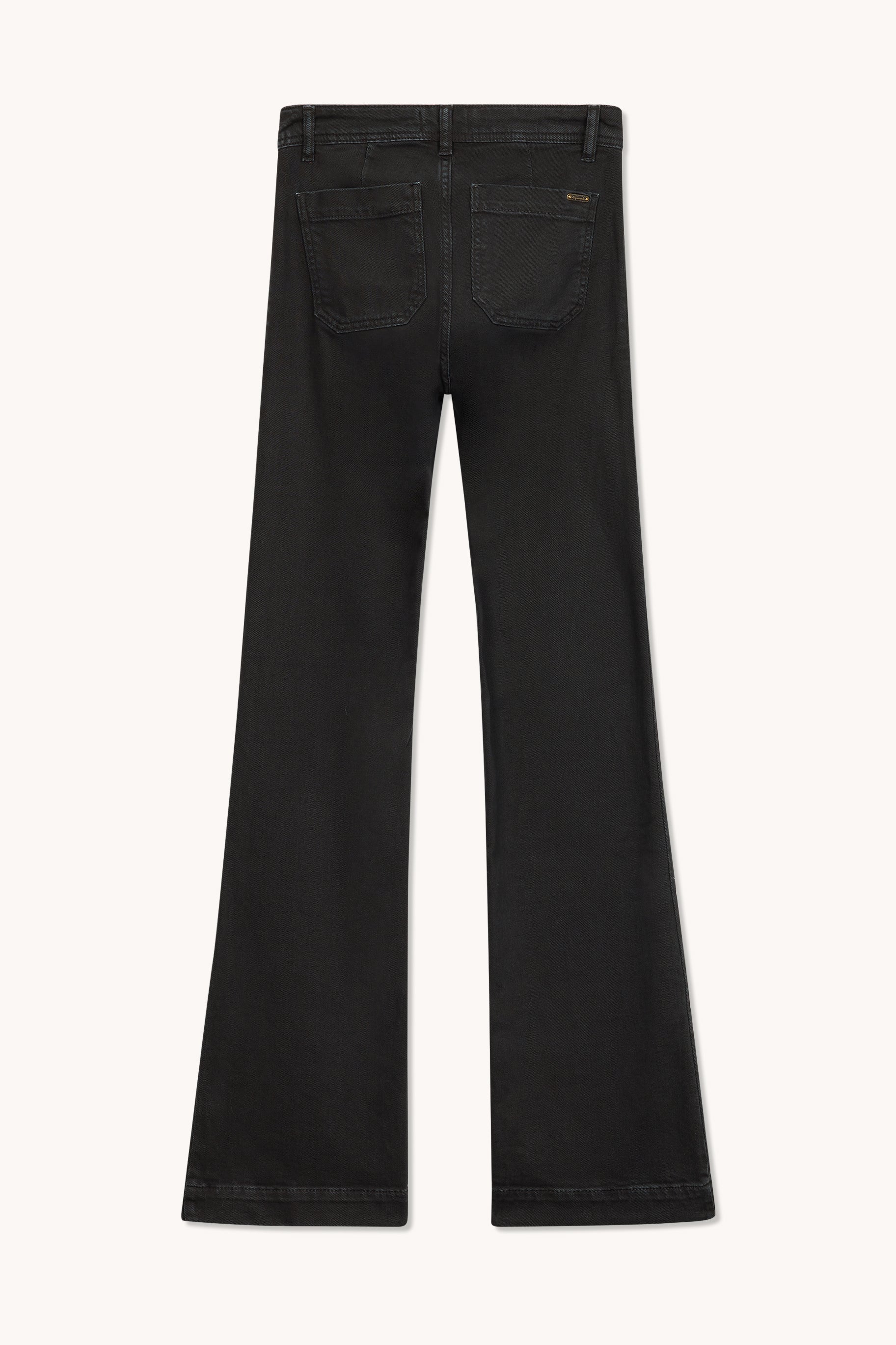 Rediscover the iconic Acquaverde Charlotte jeans and their beloved flared cut . In this vintage black denim version, they elongate the silhouette and guarantee an irresistible leg-lengthening effect.