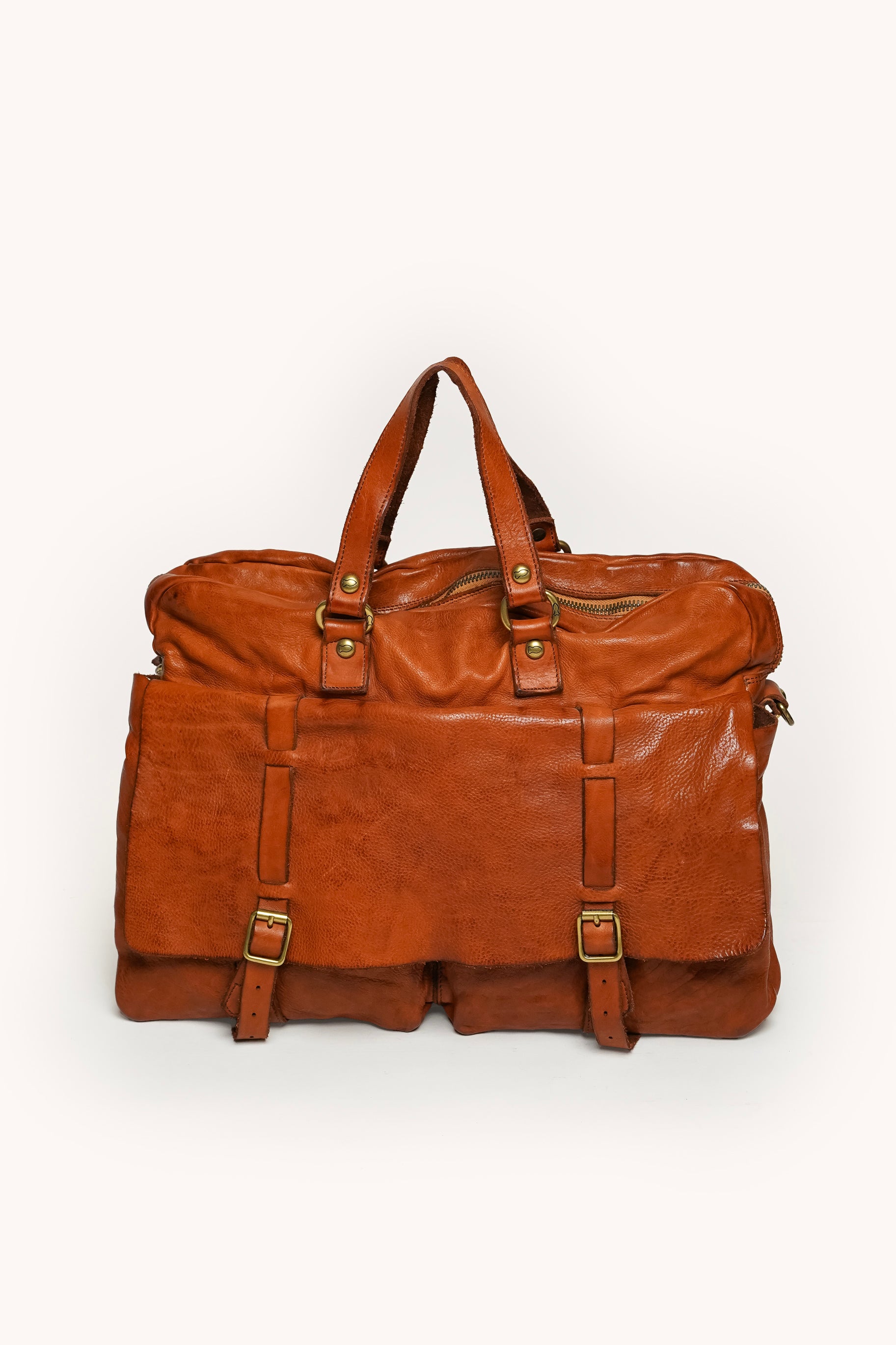 Avec son grand format, le Carrier est idéal pour transporter documents, effets personnels ou vêtements pour de courts séjours, tout en restant maniable et confortable à porter grâce à ses poignées solides. Les détails artisanaux, comme les coutures apparentes et les boucles métalliques vieillies, soulignent le savoir-faire italien et le style intemporel de Campomaggi.