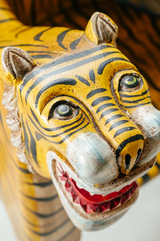 Fauteuil Tigre en bois d'acacia sculpté – Artisanat unique de Jodhpur, Rajasthan