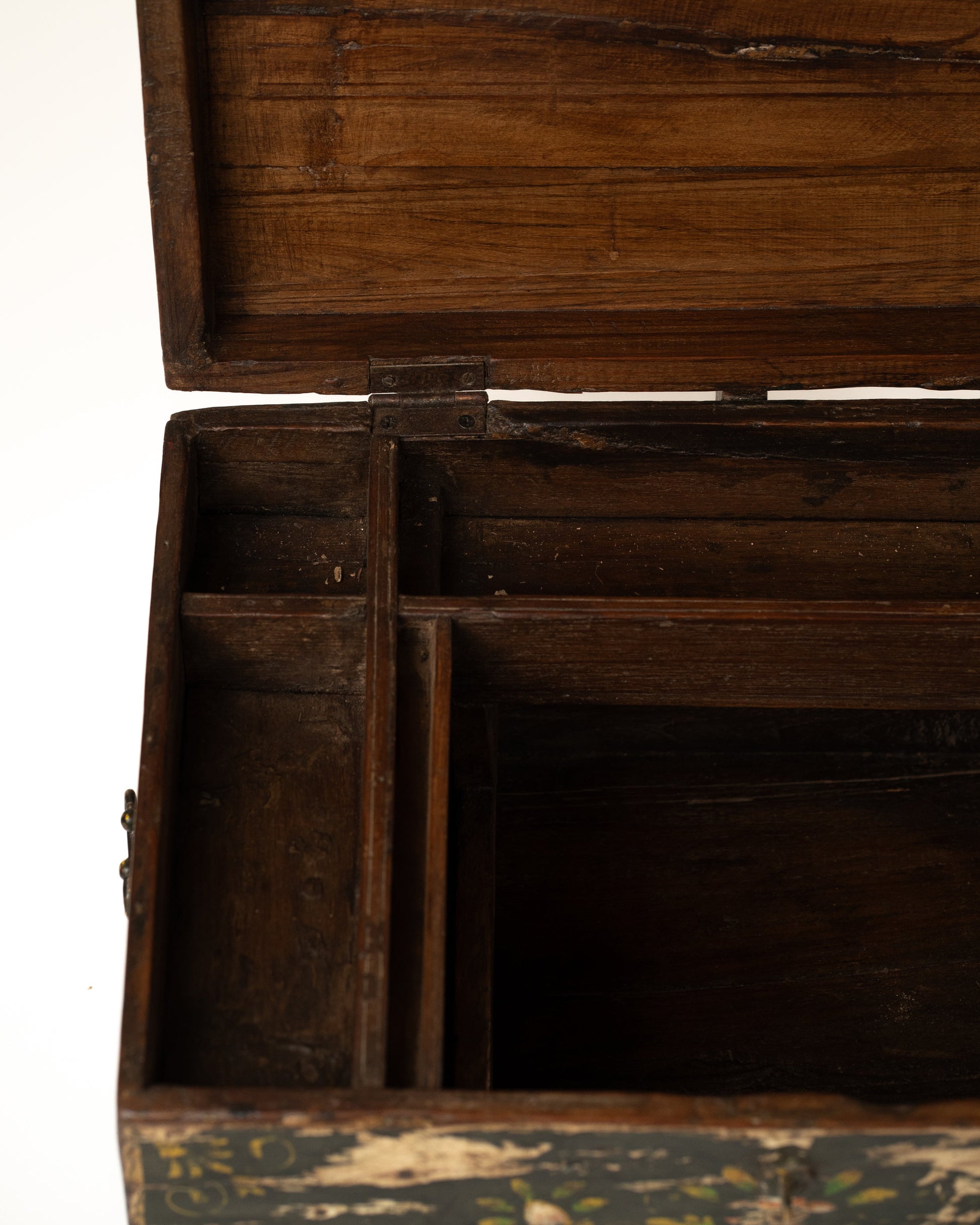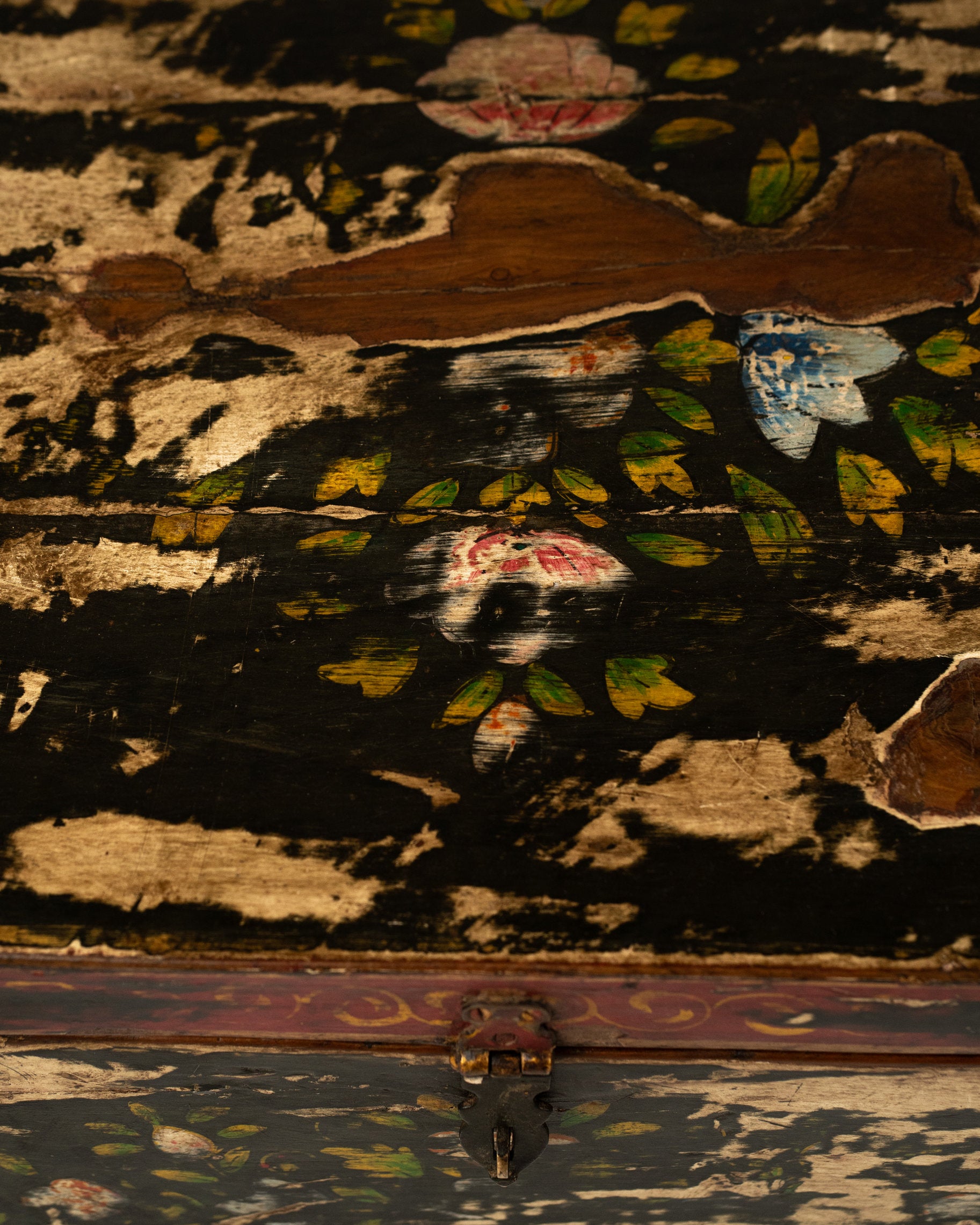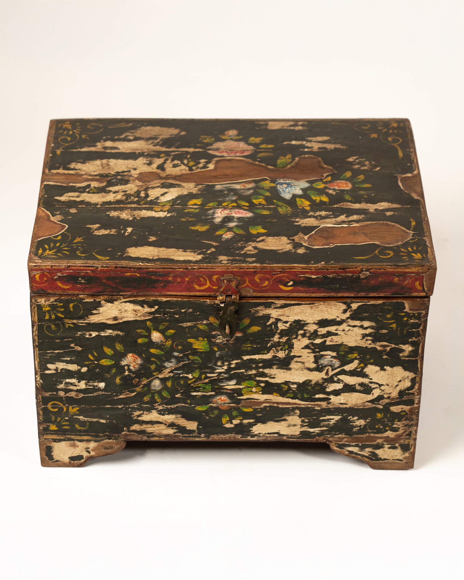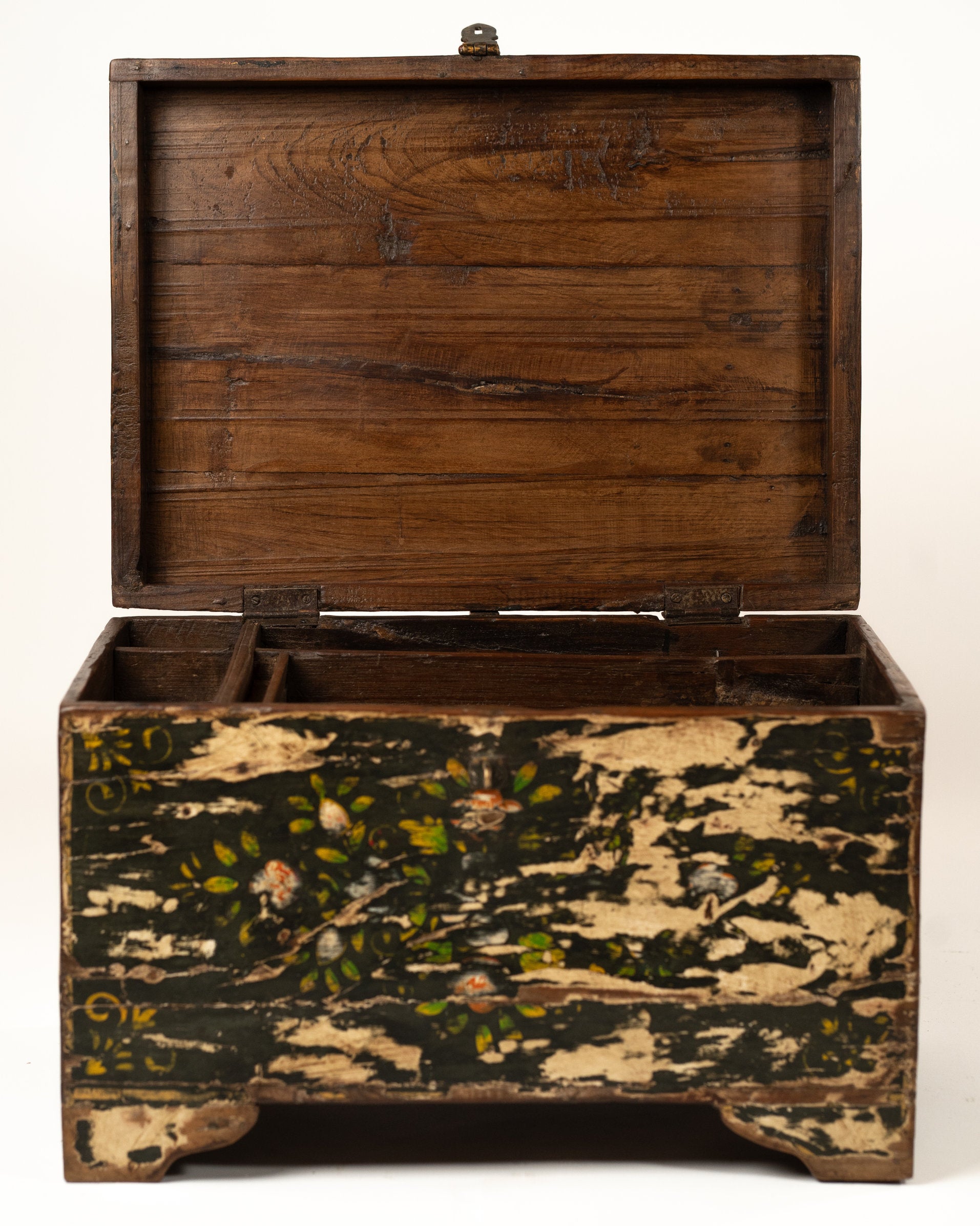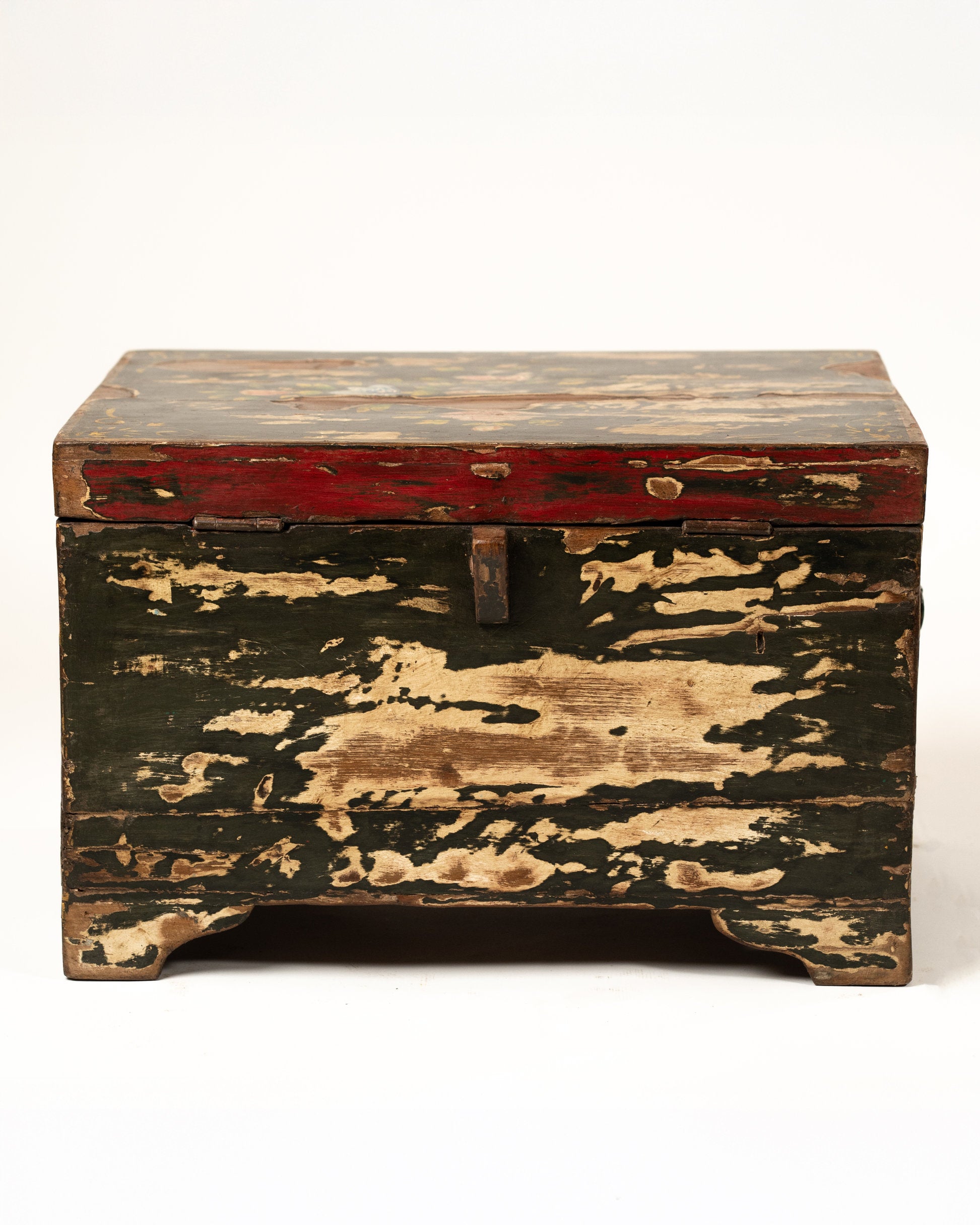 Apportez une touche d’élégance artisanale à votre intérieur avec ce coffre L’Île Bleue, une pièce unique entièrement peinte à la main. Son coloris vert noir patiné et ses motifs délicats évoquent l’authenticité du fait-main.