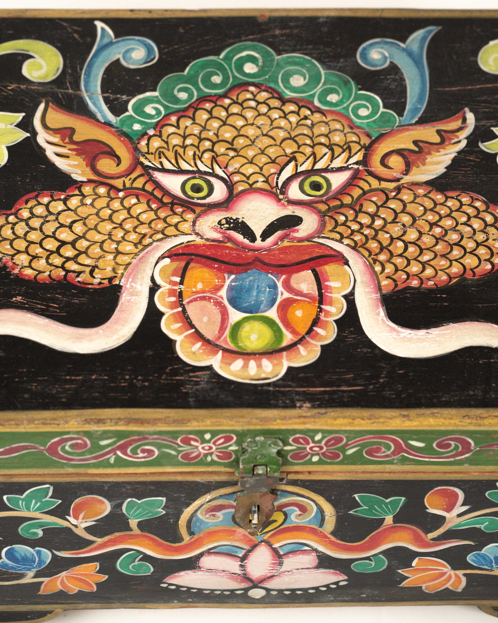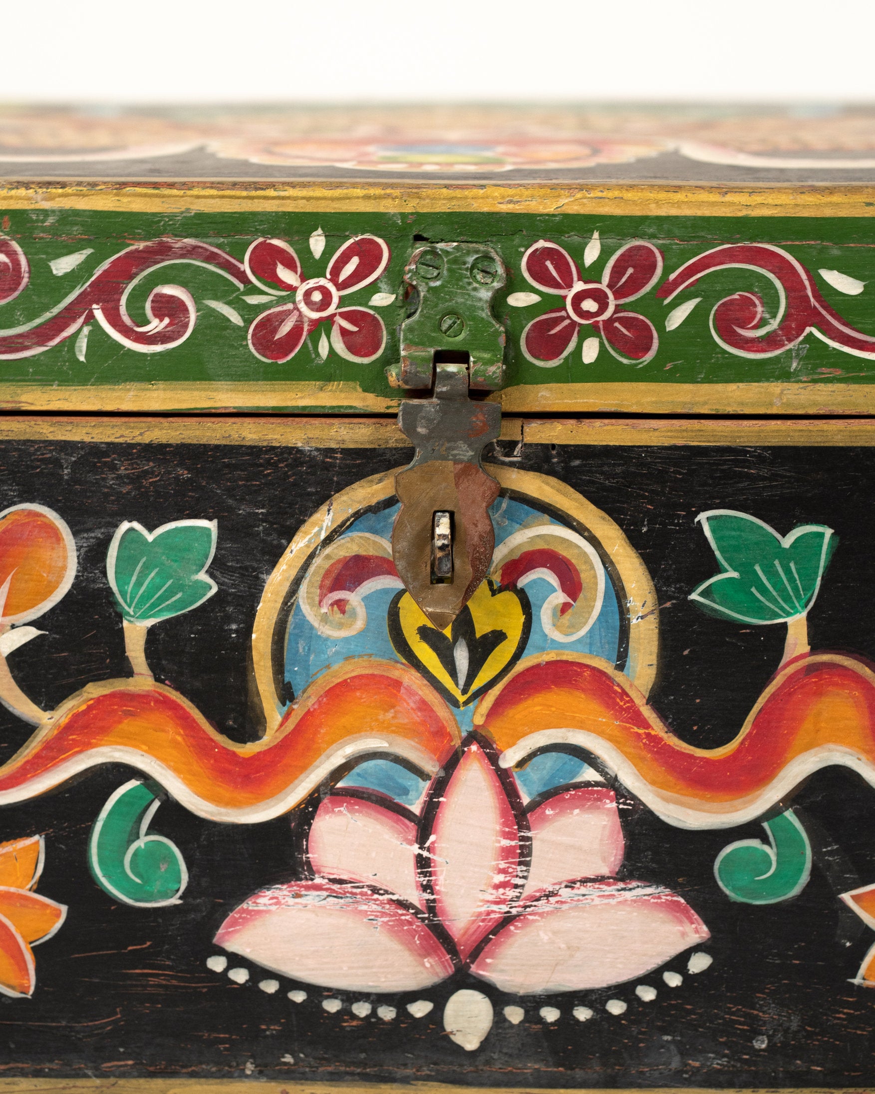 Apportez une touche d’élégance artisanale à votre intérieur avec ce coffre L’Île Bleue, une pièce unique entièrement peinte à la main. Son coloris noir et ses motifs colorés en font une pièce forte et unique.