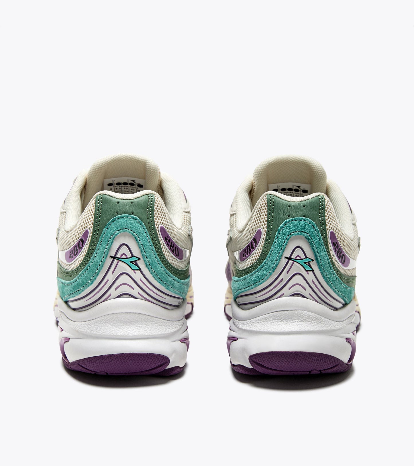 Inspired by a real performance running shoe, the Mythos features a chunky and rounded design. The diadora logo, which extends to the laces and sole, defines tapered lines, which balance the shape. Made in leather and pigskin leather, these shoes are essential to enhance all your outfits, from the sportiest to the most casual. You have to try them to believe it!