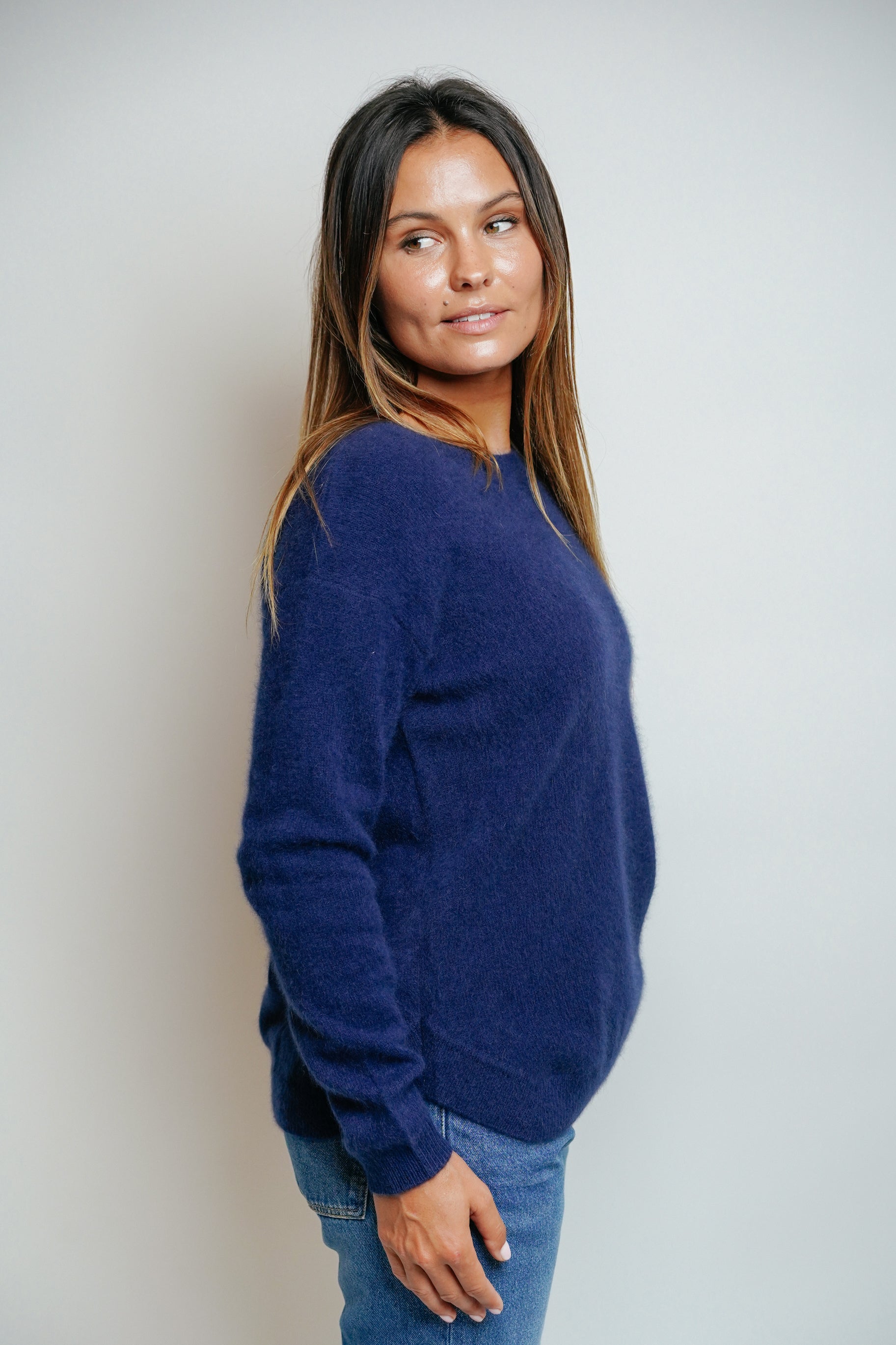 Here is the round neck model with a small slit on either side of the hip for added comfort.