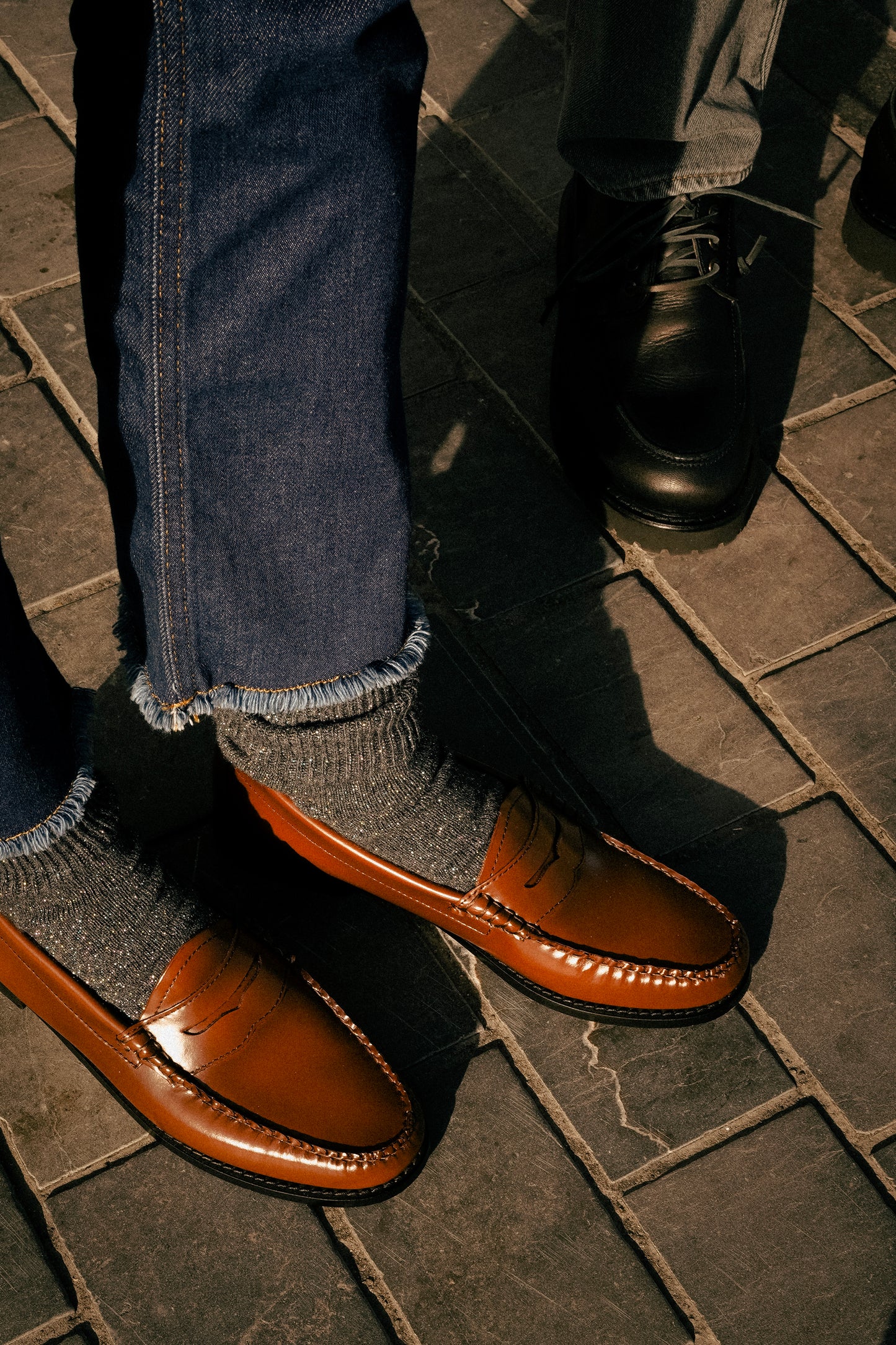 These elegant shoes are crafted from polished cognac leather for a sophisticated finish, and are hand-stitched to replicate the techniques used on the first Weejuns in 1936. The Easy Weejuns style of these moccasins prioritizes comfort and versatility.