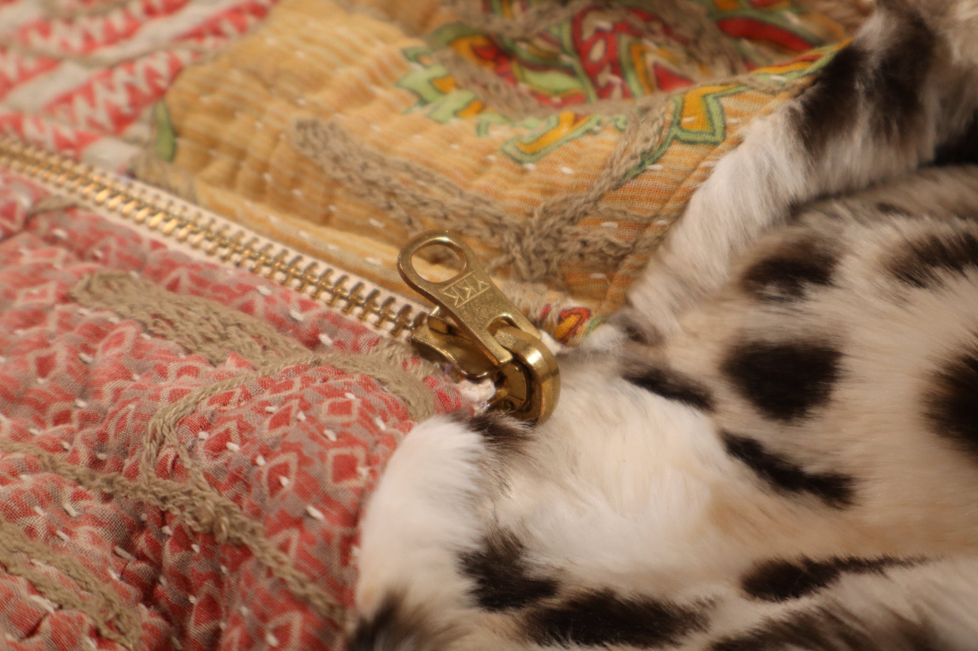 The L'Île Bleue Leopard Suzani sleeveless hoodie in color 1 is a truly unique piece. Its sleeveless design allows for easy layering while maintaining comfort and freedom of movement. Lined for warmth and softness, it provides protection while remaining lightweight. The leopard and Suzani prints add authenticity and originality, and every detail is meticulously crafted, making this hoodie a unique, modern garment full of character.
