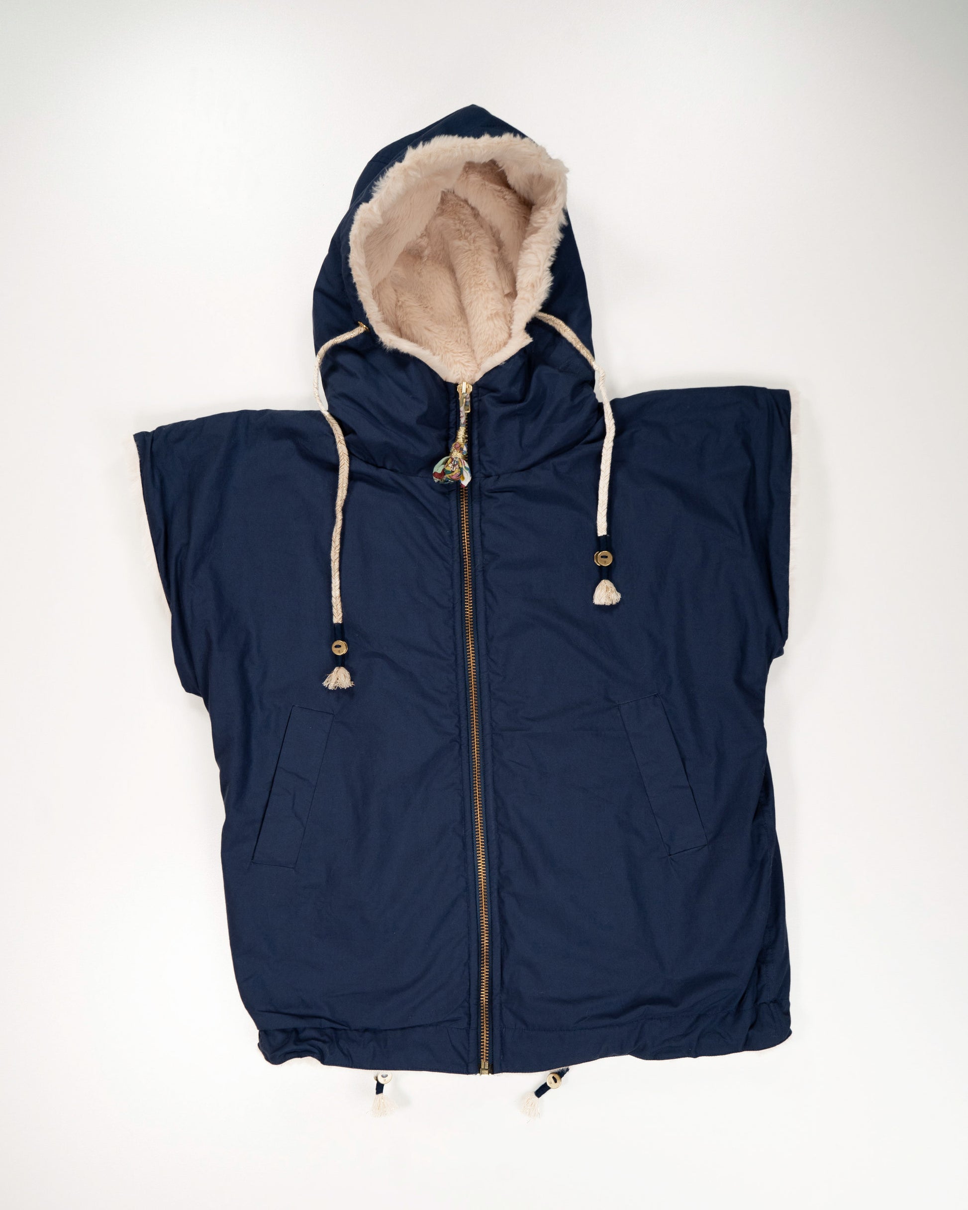 The L'Île Bleue blue fleece-lined, waterproof sleeveless hoodie is a truly unique piece. Its waterproof fabric protects against the elements while maintaining warmth and comfort thanks to its thick lining. The sleeveless design makes it easy to layer and ensures great freedom of movement. Every detail is carefully crafted, making this hoodie a practical, modern, and stylish garment.
