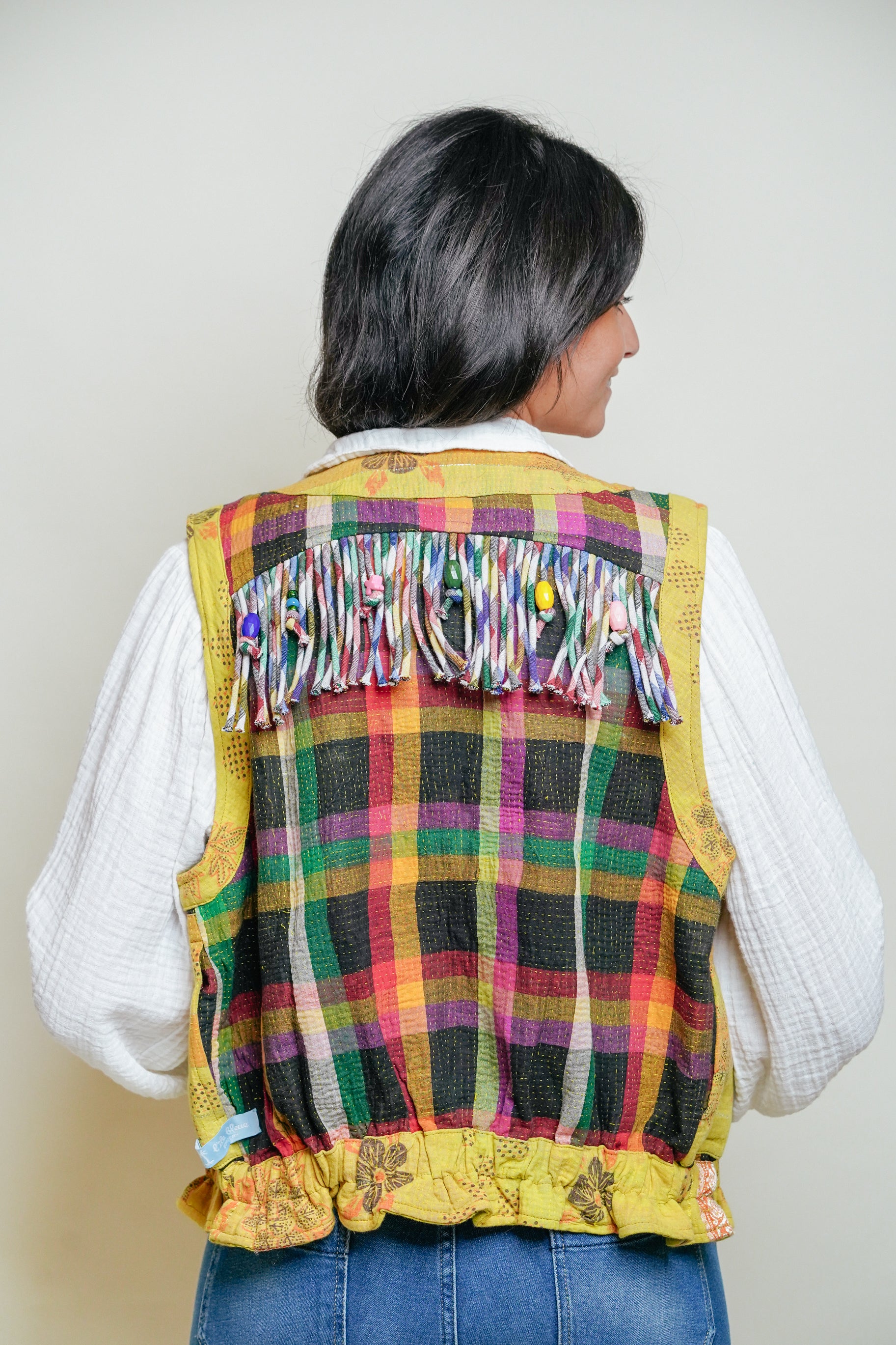 THE BLUE ISLAND - Fringed Kantha Vest 26
