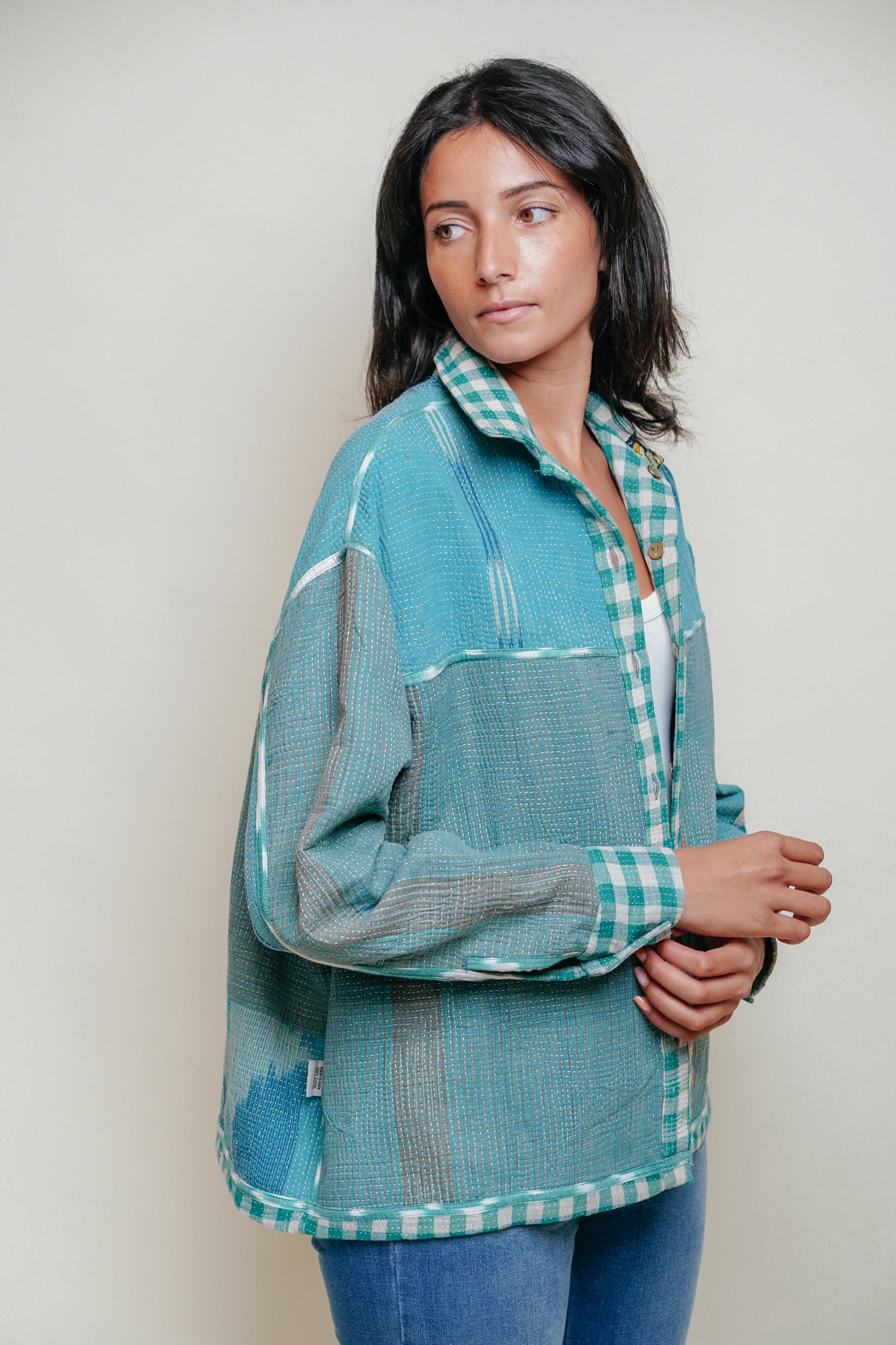 Here, the model 10 in a relatively thin Kantha is ideal for cool summer evenings.