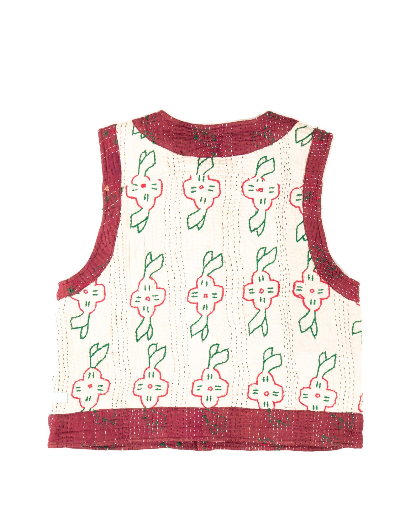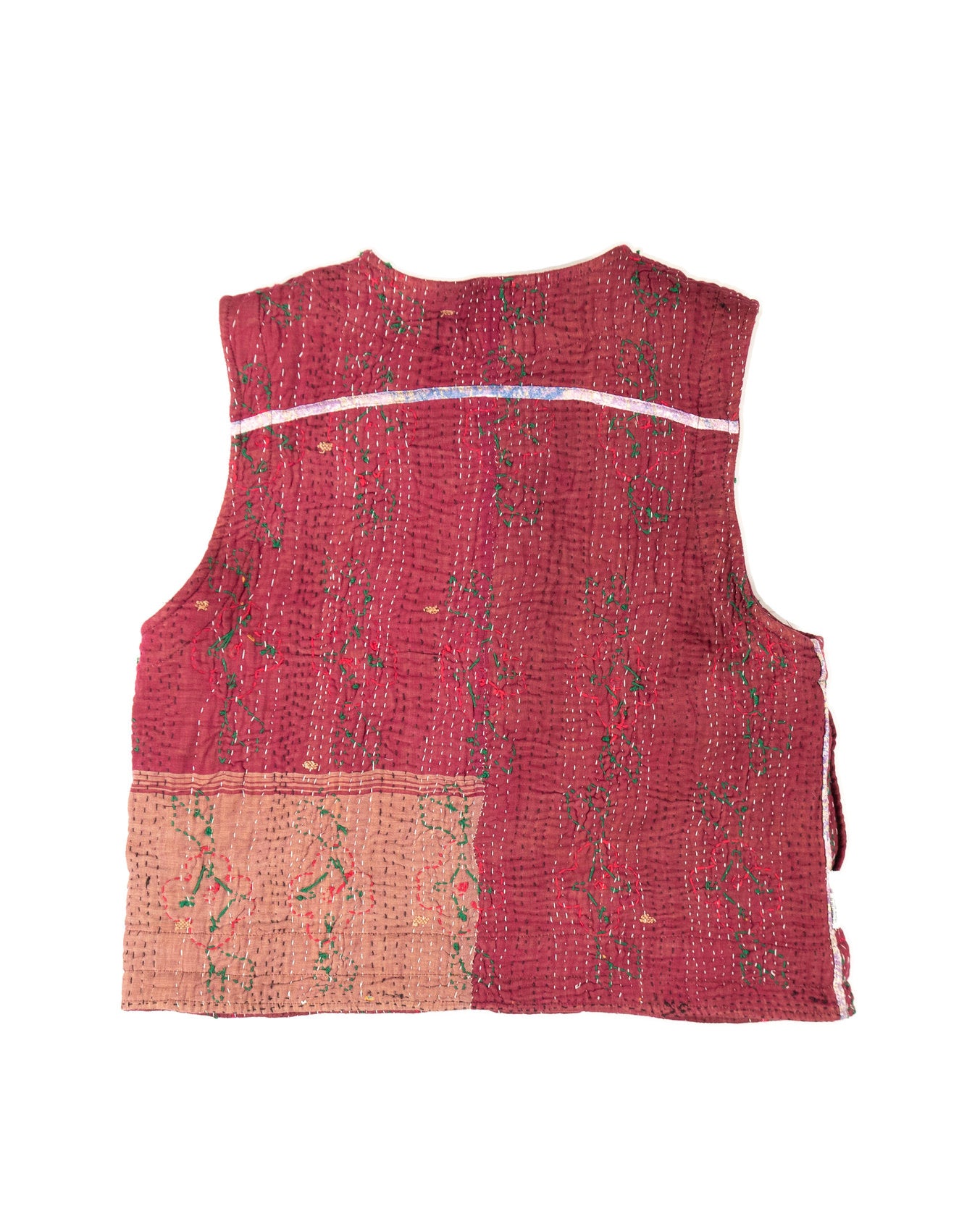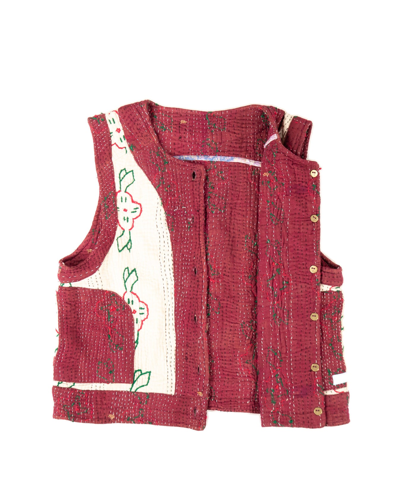 Le gilet Annie est une pièce rare qui célèbre le savoir-faire artisanal et l’élégance intemporelle. Imaginé à Bordeaux puis confectionné avec soin dans un atelier en Inde, il associe la richesse du Kantha, une technique traditionnelle de couture indienne à la délicatesse des broderies Suzani, emblématiques d’Asie centrale.