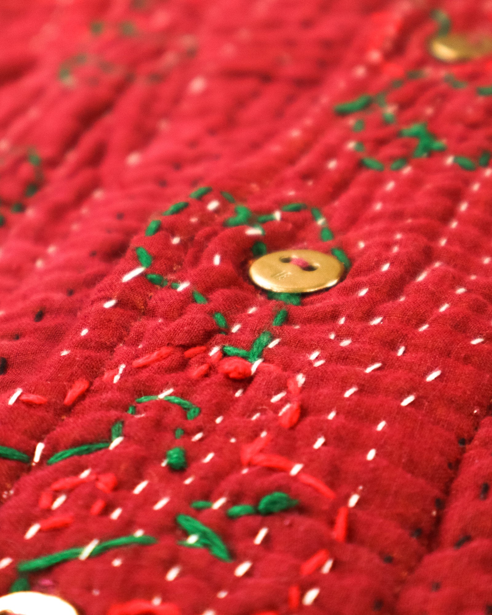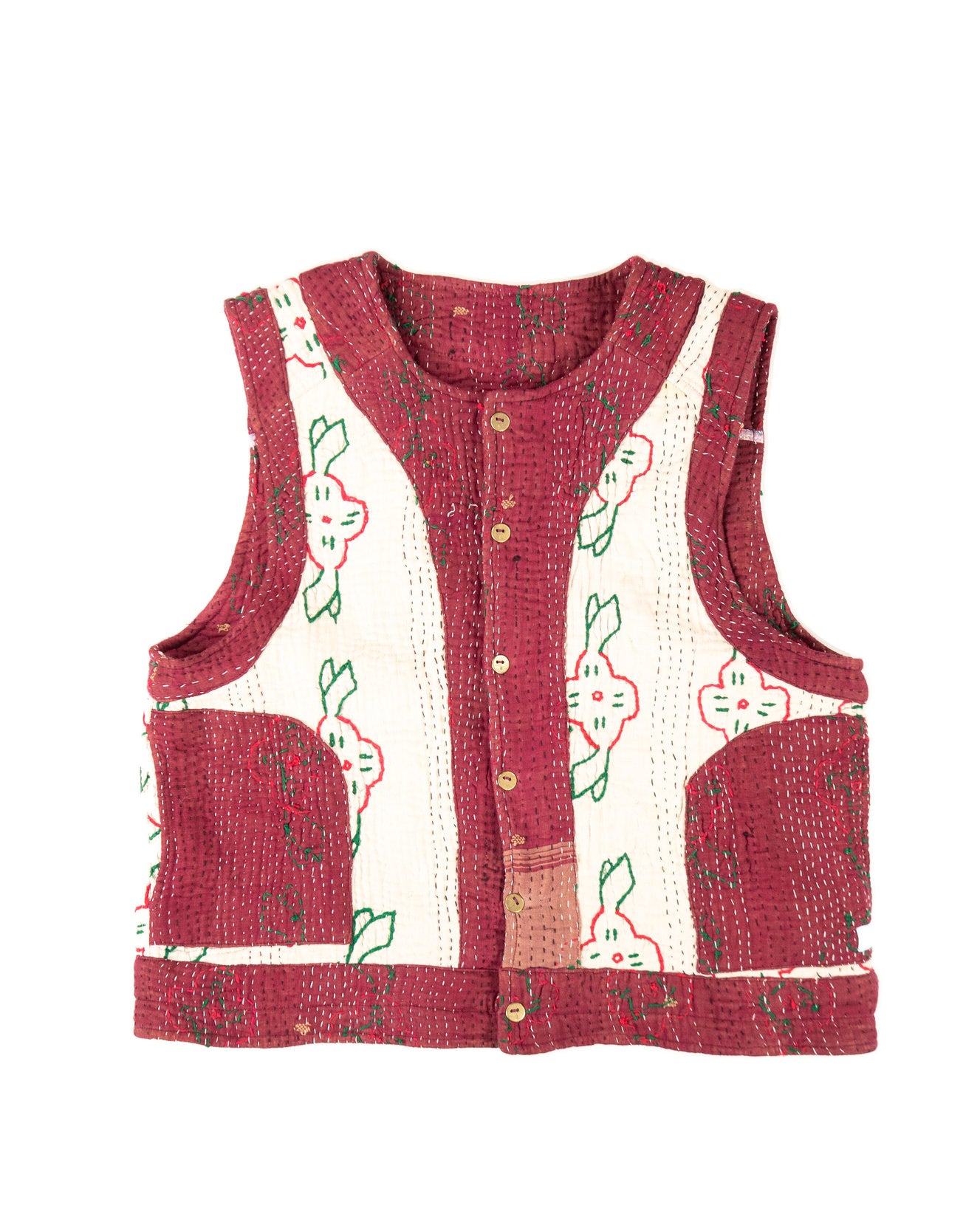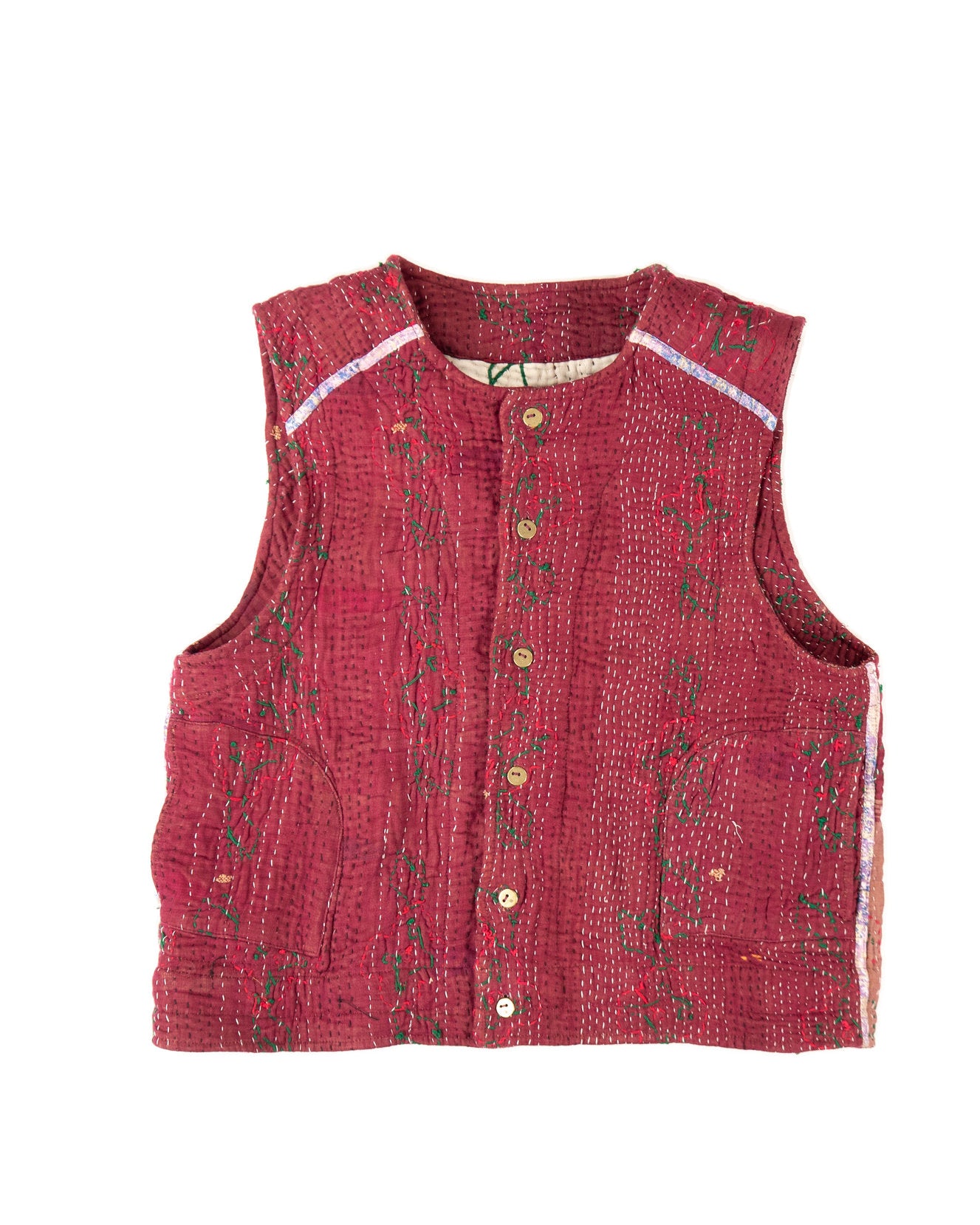Le gilet Annie est une pièce rare qui célèbre le savoir-faire artisanal et l’élégance intemporelle. Imaginé à Bordeaux puis confectionné avec soin dans un atelier en Inde, il associe la richesse du Kantha, une technique traditionnelle de couture indienne à la délicatesse des broderies Suzani, emblématiques d’Asie centrale.