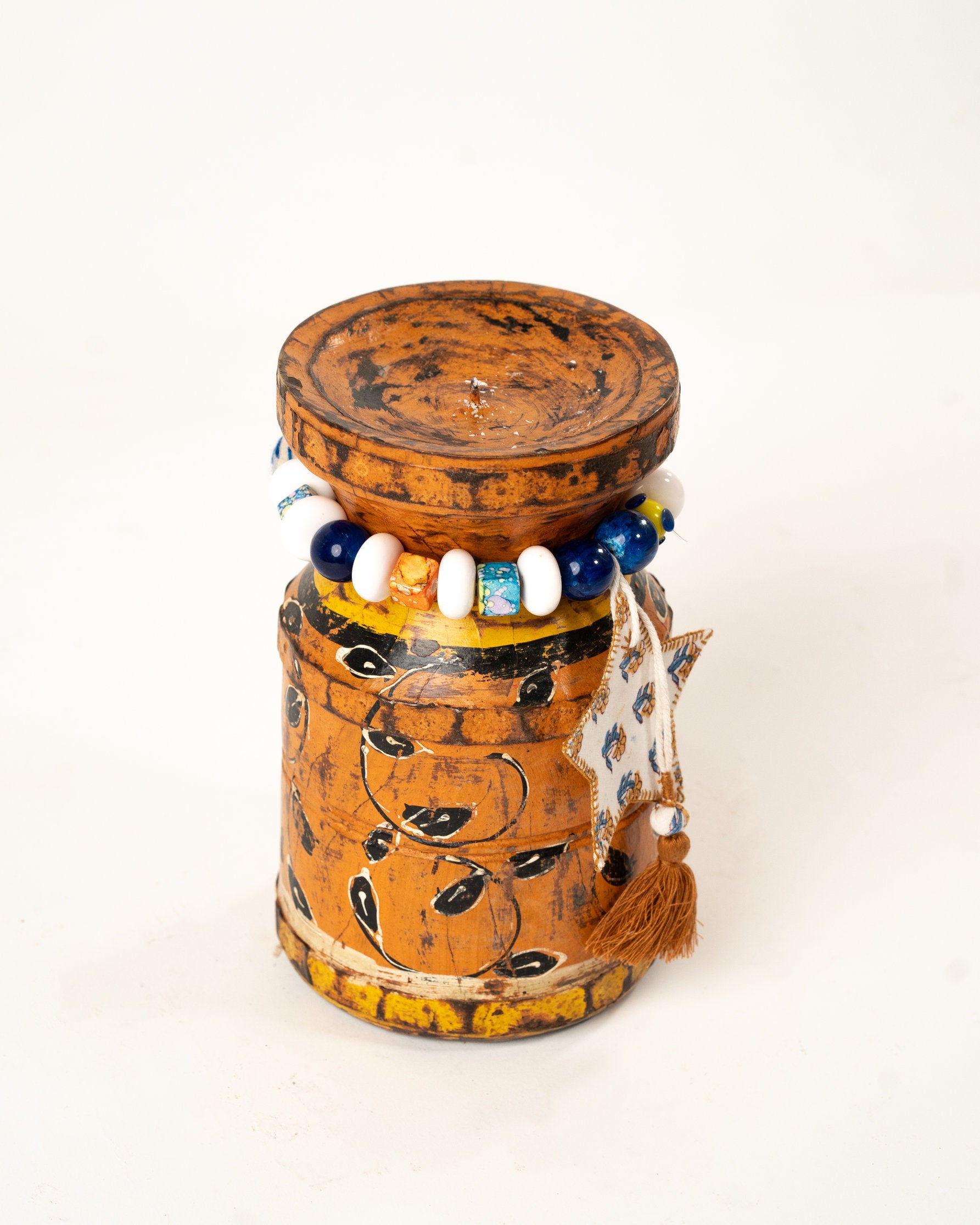 Apportez une touche de charme et de caractère à votre intérieur avec ce bougeoir artisanal en bois d'acacia, fabriqué à la main à Jodhpur, au Rajasthan. Chaque bougeoir est sculpté avec soin par des artisans locaux, mettant en valeur la beauté naturelle et les veines uniques du bois d'acacia. Ce modèle se distingue par son effet vintage, délibérément créé pour lui conférer une allure intemporelle et élégante. La peinture à la main, avec des teintes subtilement vieillies, renforce son aspect patiné, évoquant l'authenticité et le raffinement des objets anciens. Ce bougeoir ajoute une ambiance chaleureuse et nostalgique à votre décoration, qu'il soit posé sur une table, une étagère ou un meuble d'appoint. Un véritable chef-d'œuvre artisanal, parfait pour ceux qui recherchent une pièce unique, pleine de caractère et d'histoire.