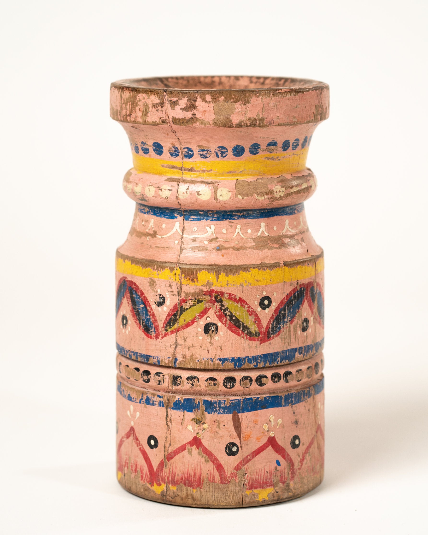 Apportez une touche de charme et de caractère à votre intérieur avec ce bougeoir artisanal en bois d'acacia, fabriqué à la main à Jodhpur, au Rajasthan. Chaque bougeoir est sculpté avec soin par des artisans locaux, mettant en valeur la beauté naturelle et les veines uniques du bois d'acacia. Ce modèle se distingue par son effet vintage, délibérément créé pour lui conférer une allure intemporelle et élégante. La peinture à la main, avec des teintes subtilement vieillies, renforce son aspect patiné, évoquant l'authenticité et le raffinement des objets anciens. Ce bougeoir ajoute une ambiance chaleureuse et nostalgique à votre décoration, qu'il soit posé sur une table, une étagère ou un meuble d'appoint. Un véritable chef-d'œuvre artisanal, parfait pour ceux qui recherchent une pièce unique, pleine de caractère et d'histoire.