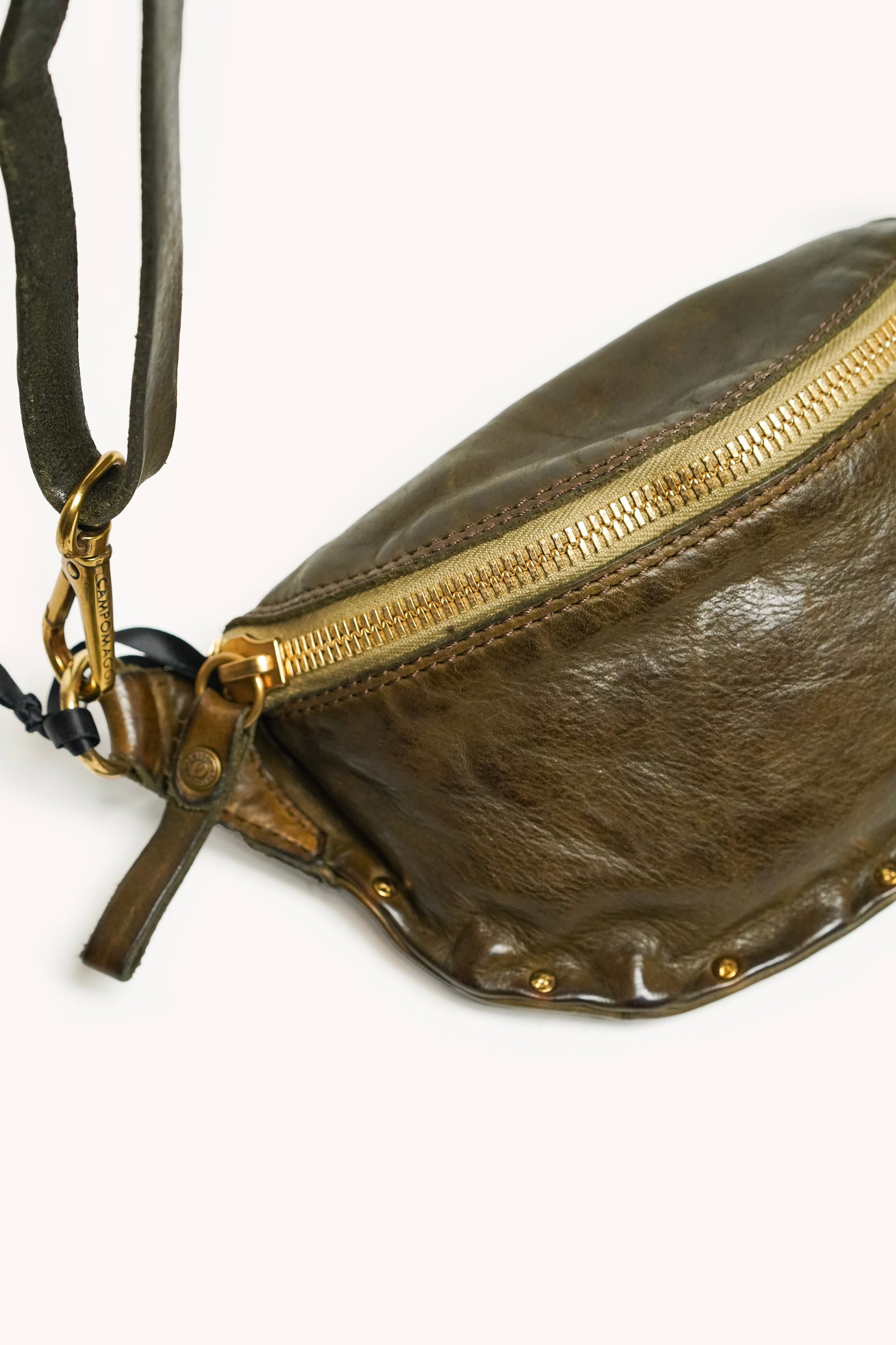 La bandoulière en cuir réglable permet un porté confortable à l’épaule ou en travers du corps. Les finitions en métal vieilli et les détails signature de la marque apportent ce charme vintage et bohème chic qui caractérise les créations Campomaggi.