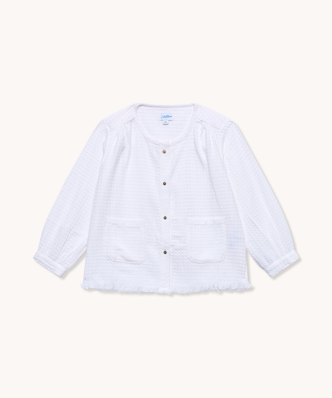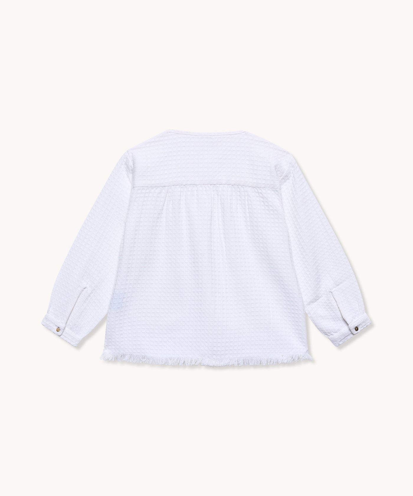 Une blouse légère en gaze de coton nid d'abeille, imaginée par Manon, faite main en Inde.