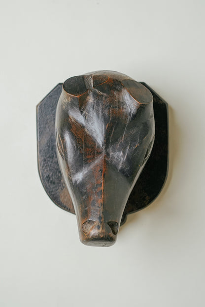 Cette tête de vache sculptée à la main en Inde dans du bois d'acacia est une véritable pièce d’art mural. Applique décorative aux lignes élégantes et naturelles, elle mêle savoir-faire artisanal et esprit sauvage. Son bois dense et chaleureux apporte une touche ethnique chic à votre intérieur, que ce soit dans un salon, une entrée ou une chambre. Chaque pièce est unique, avec des détails sculptés et des veines du bois qui racontent une histoire.