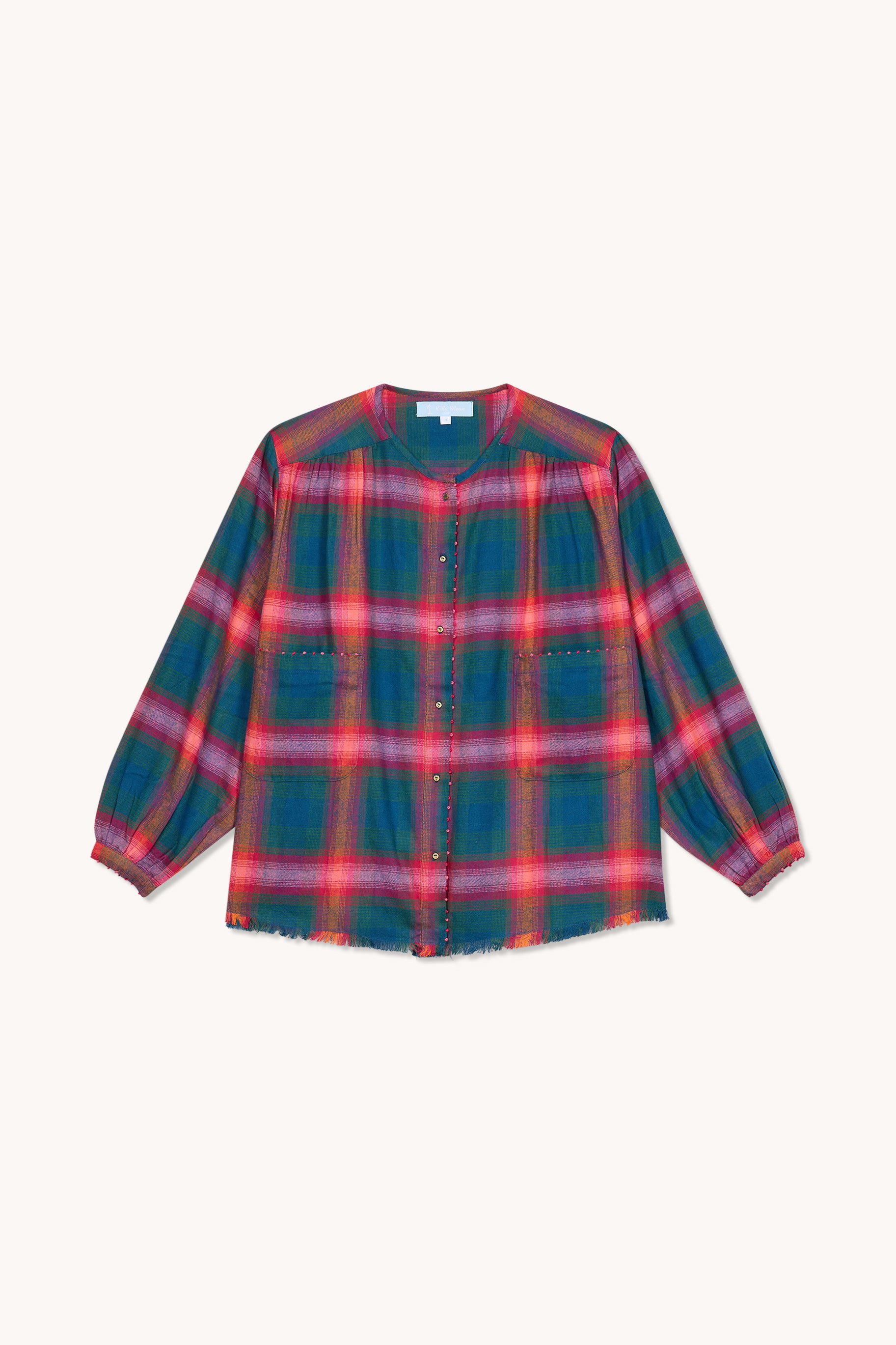 Cette blouse légère en 100% coton séduit par son esprit bohème et décontracté. Son imprimé tartan est ponctué de petits french knots, apportant une touche artisanale raffinée.