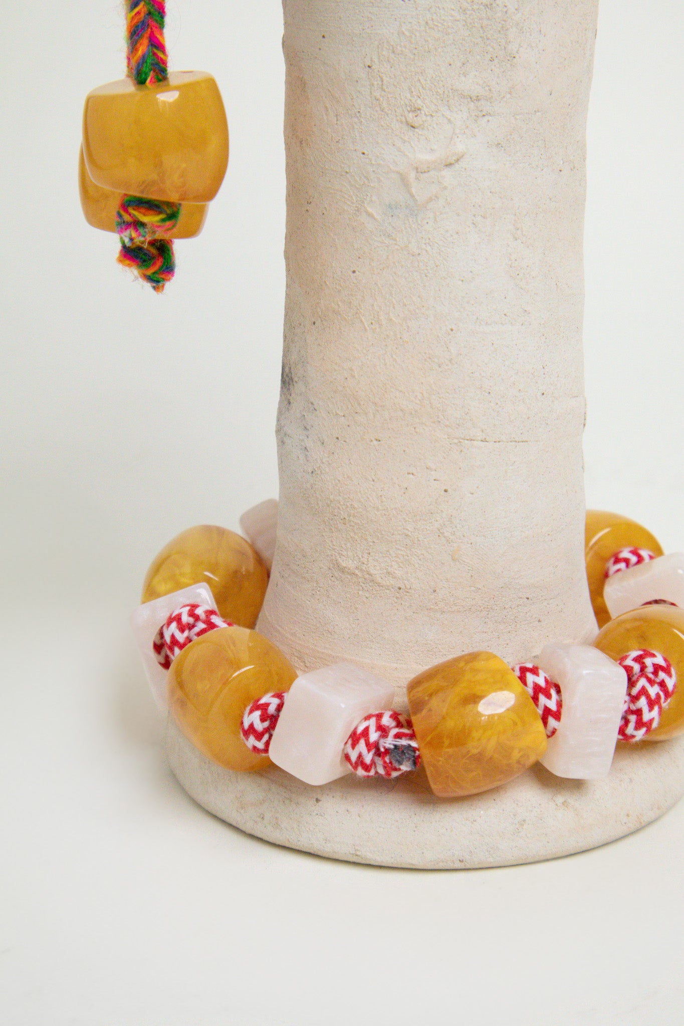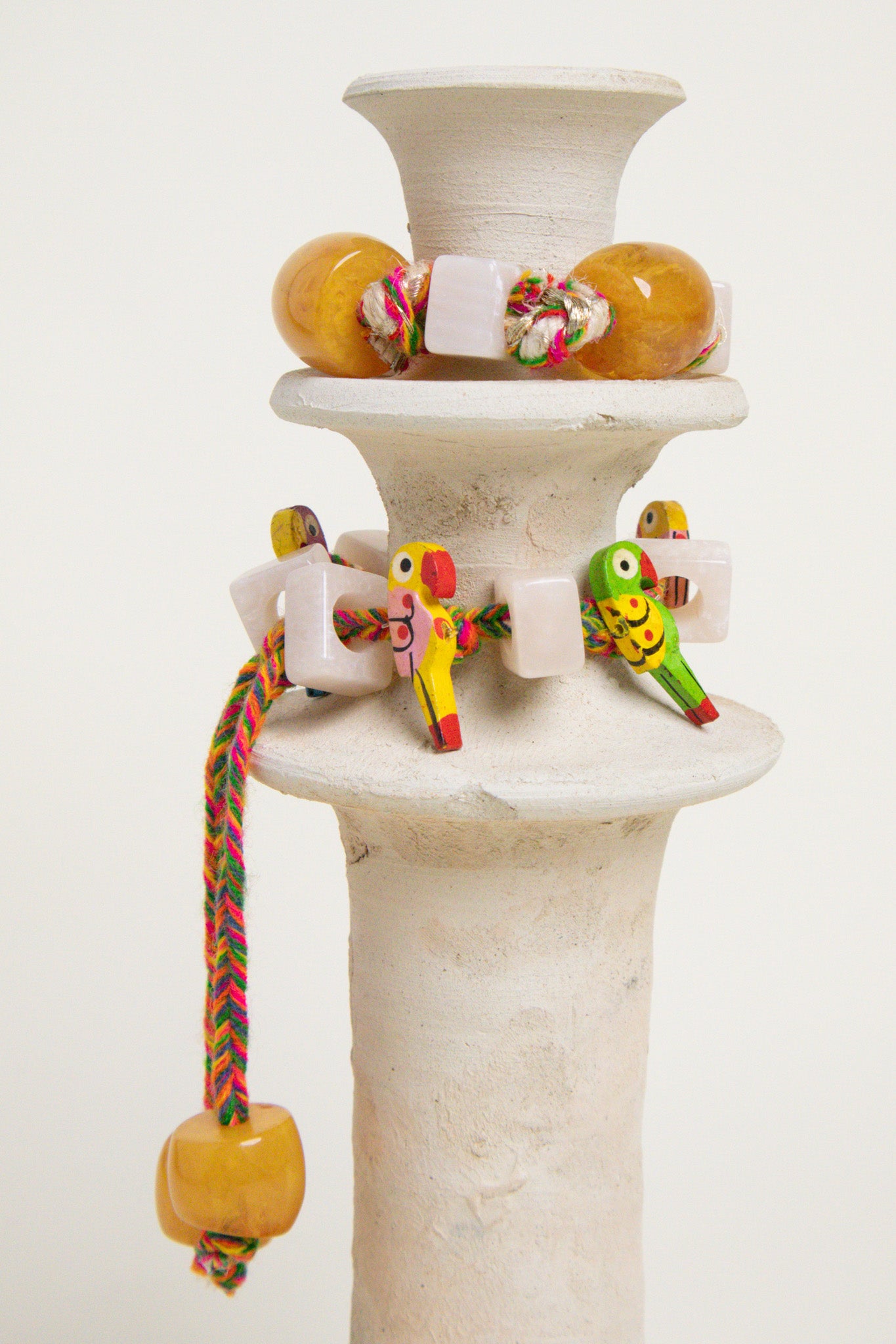 Dans son atelier, Manon imagine et crée à la main de petits bijoux de perles qu’elle vient ensuite suspendre ou nouer autour du bougeoir, comme une touche finale pleine de poésie. Ces détails délicats donnent vie à un objet à la fois minimaliste et chaleureux, pensé pour sublimer la flamme d’une bougie et éveiller une atmosphère douce et inspirée.