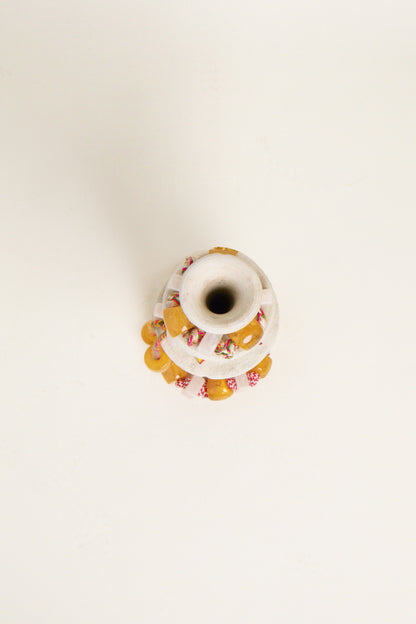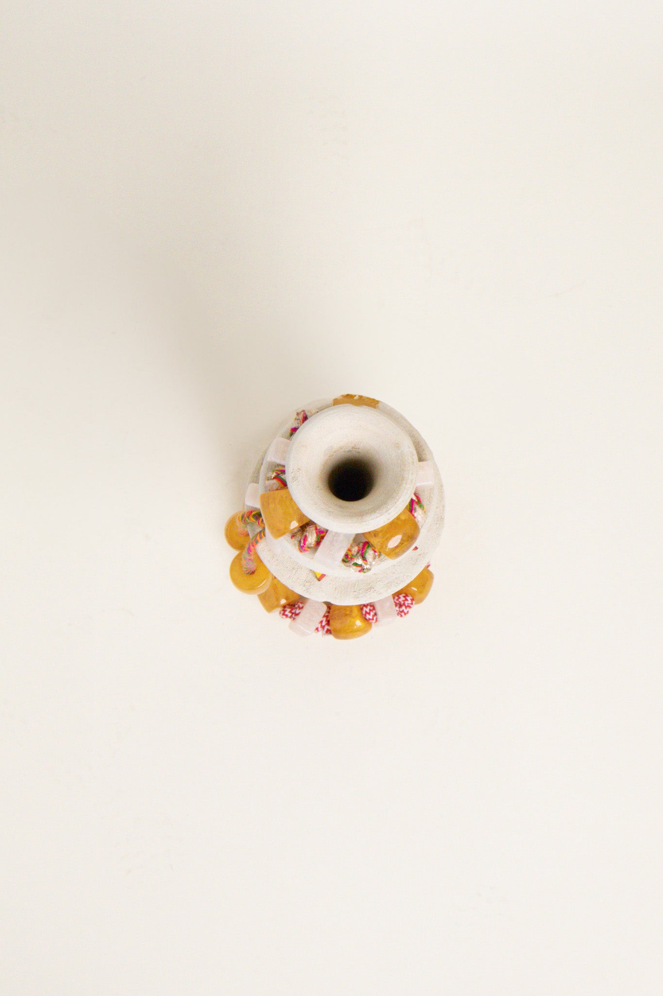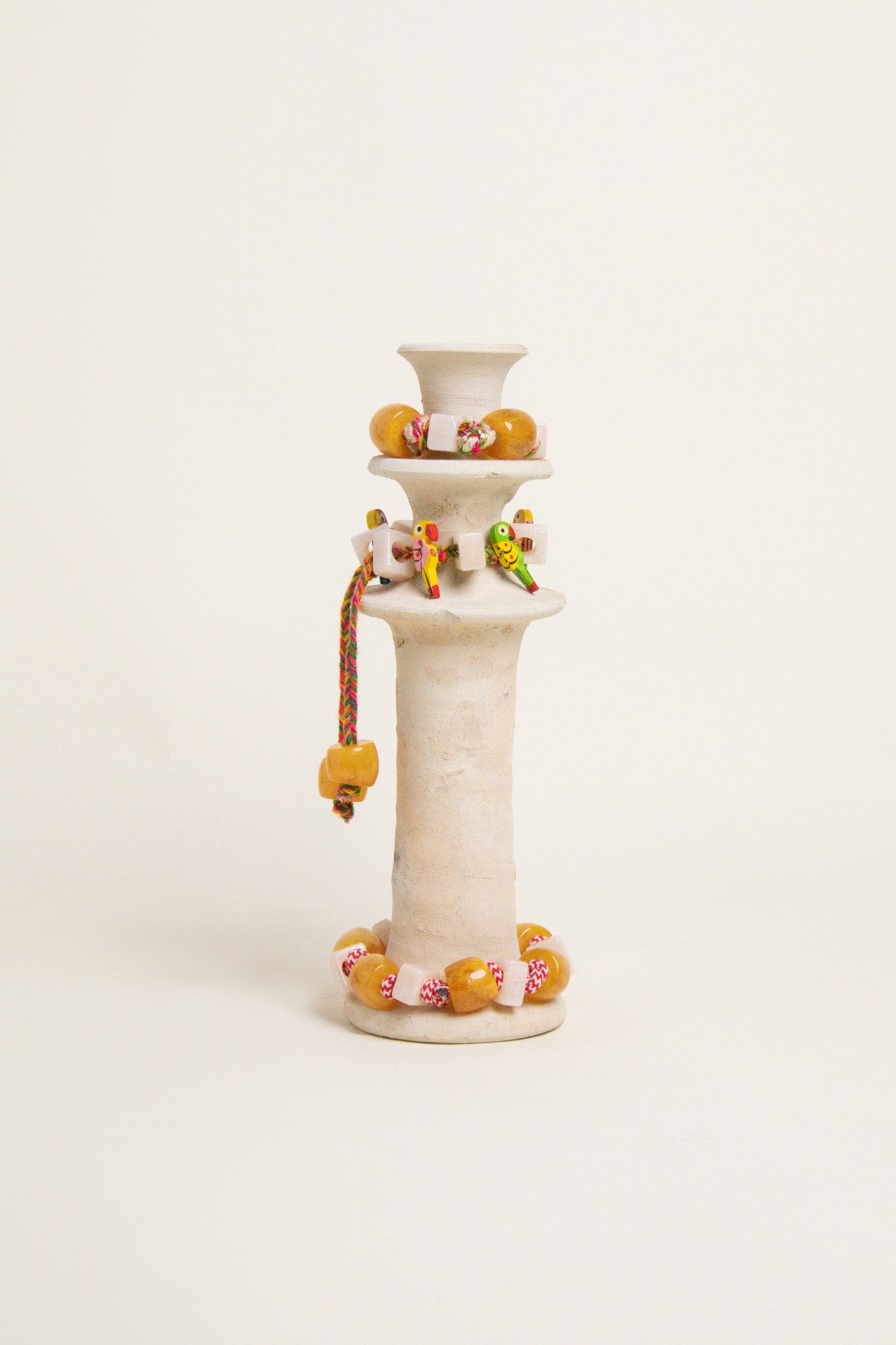 Bougeoir en céramique blanche – Pièce artisanale ornée de perles faites main