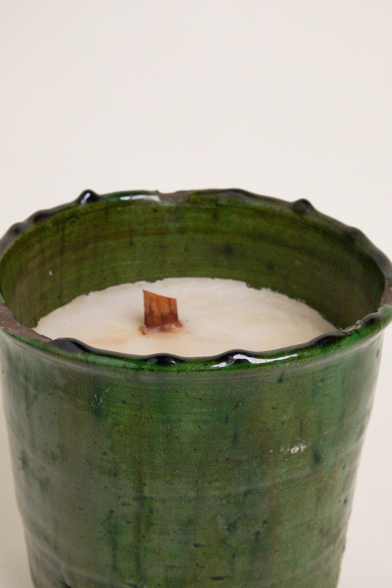 Bougie artisanale en Tamegroute – Céramique marocaine et cire naturelle