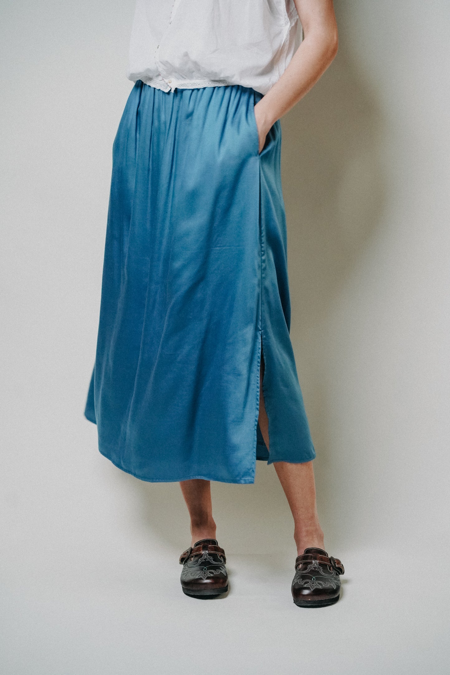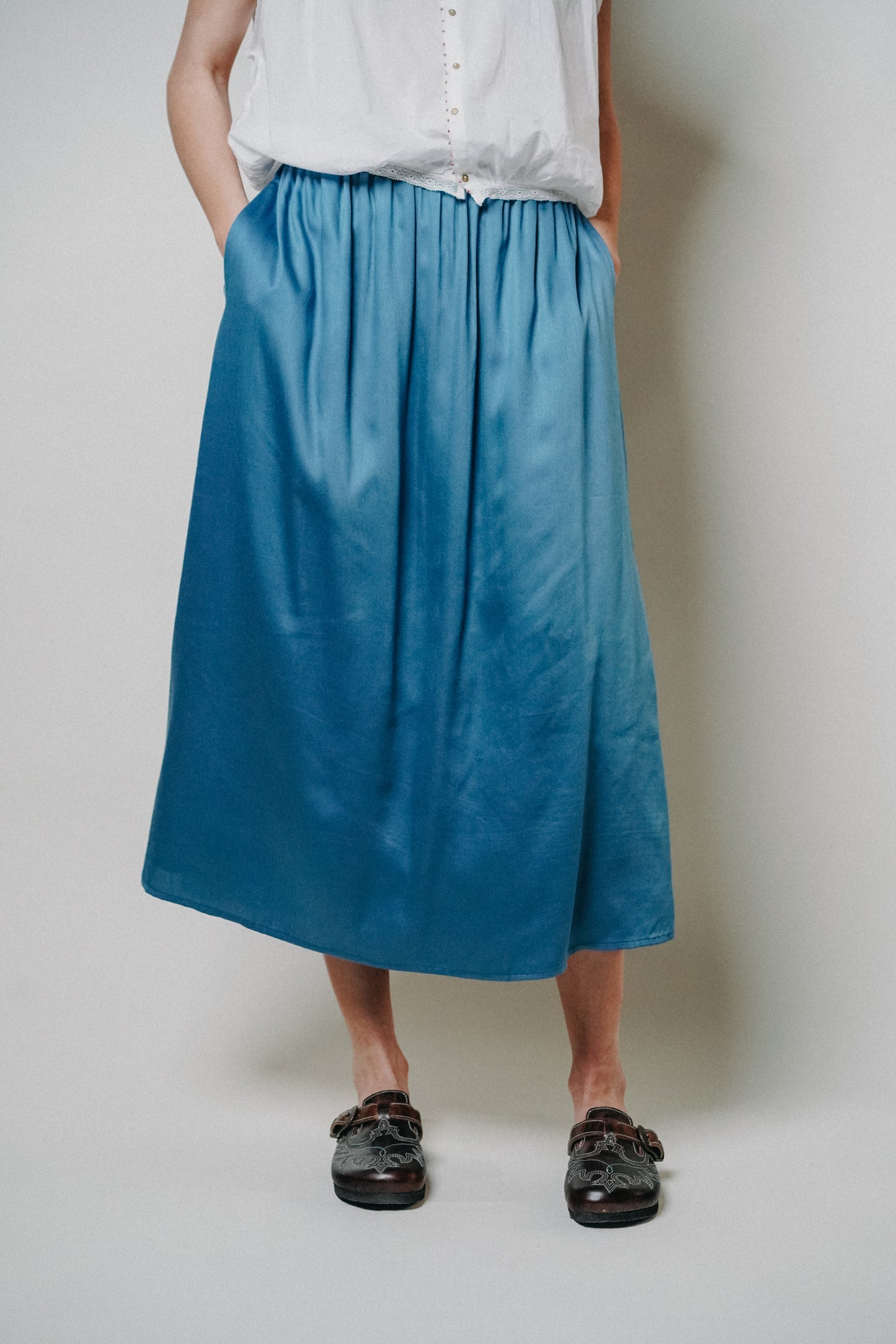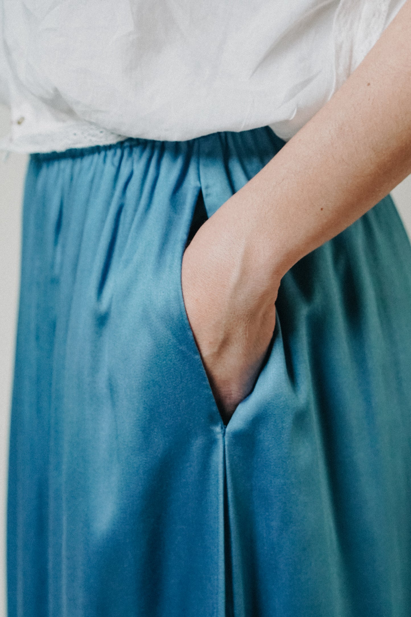 Jupe Longue en Soie Doublée Coton – Bleu Intense