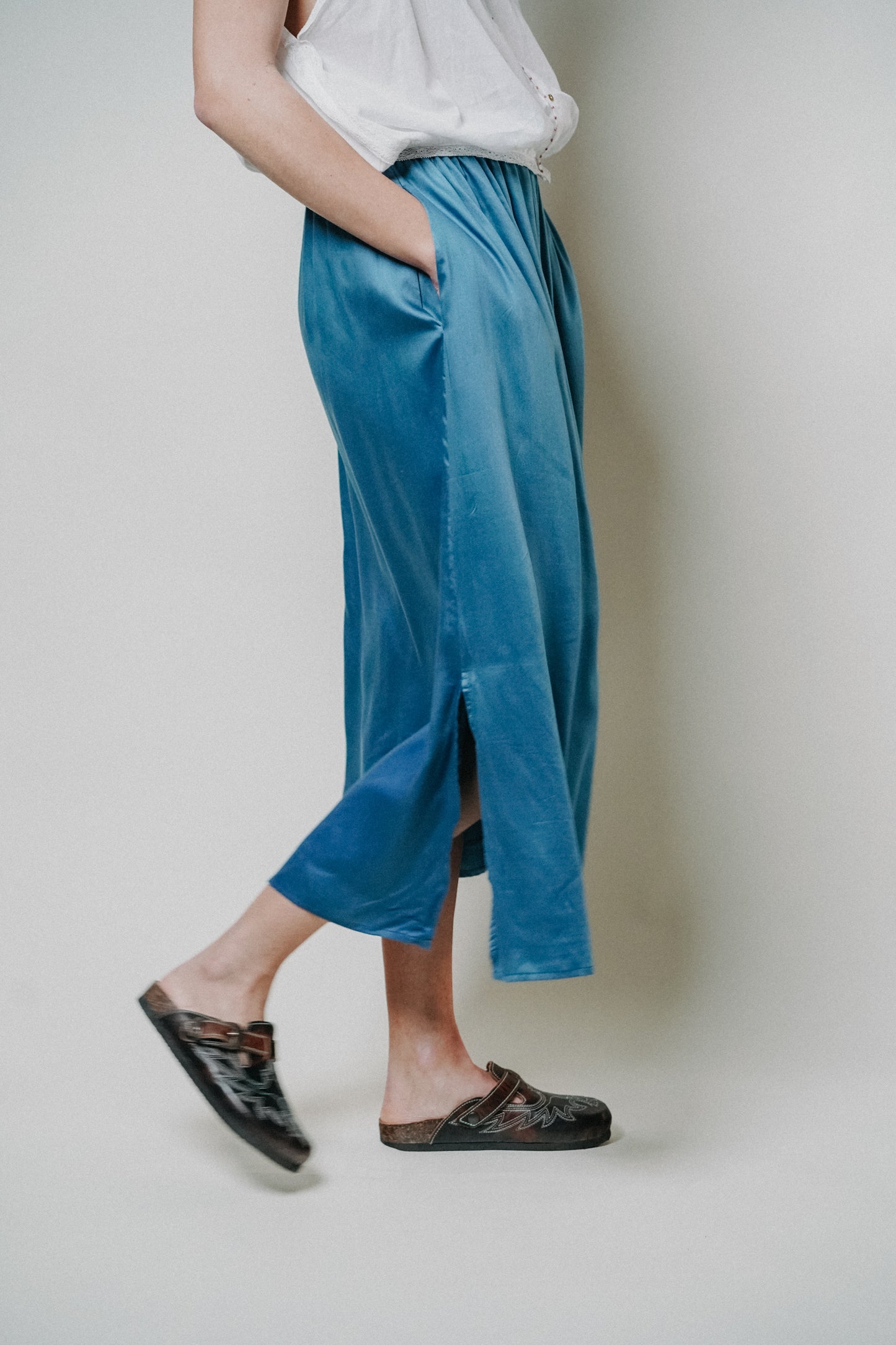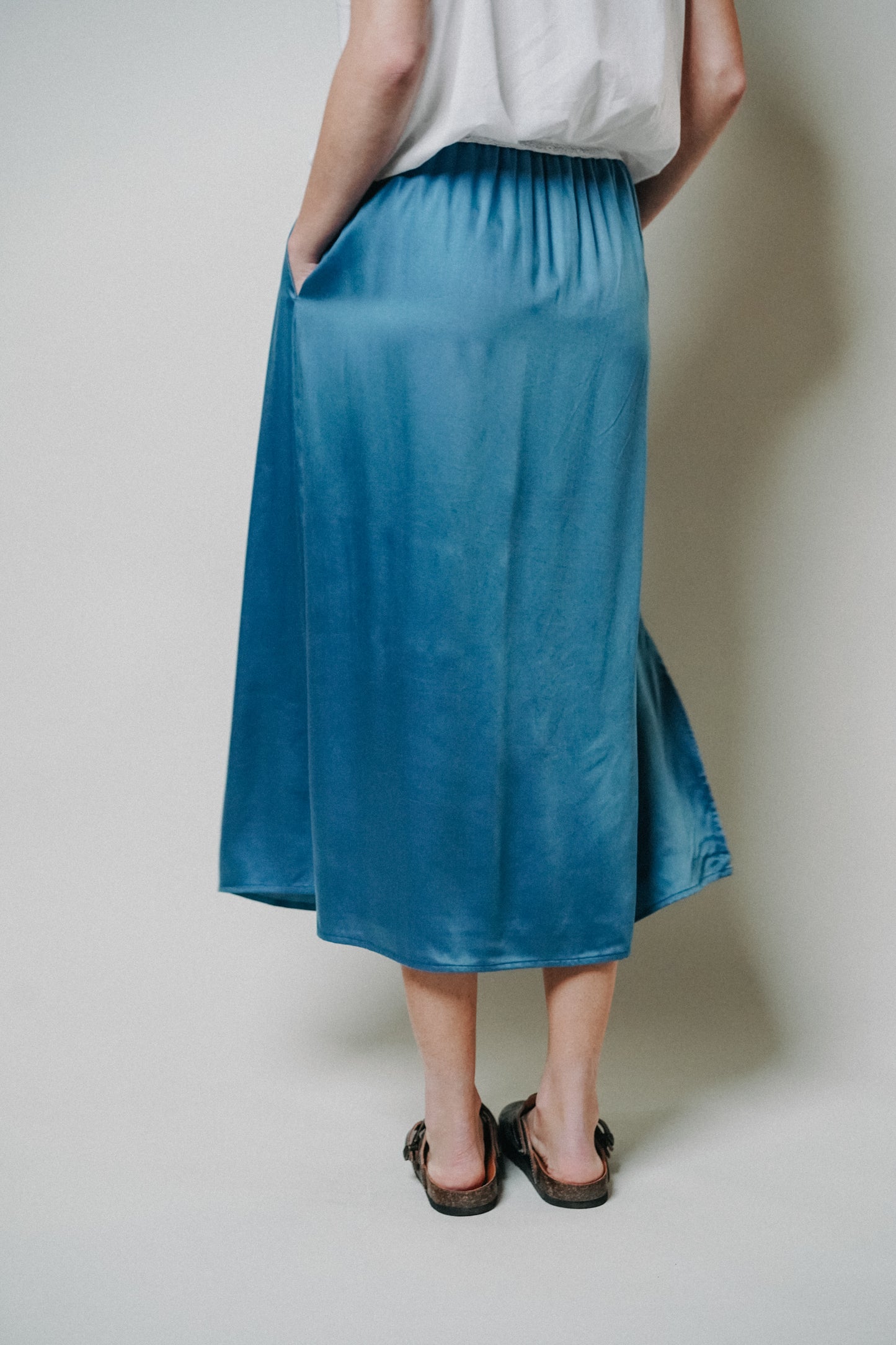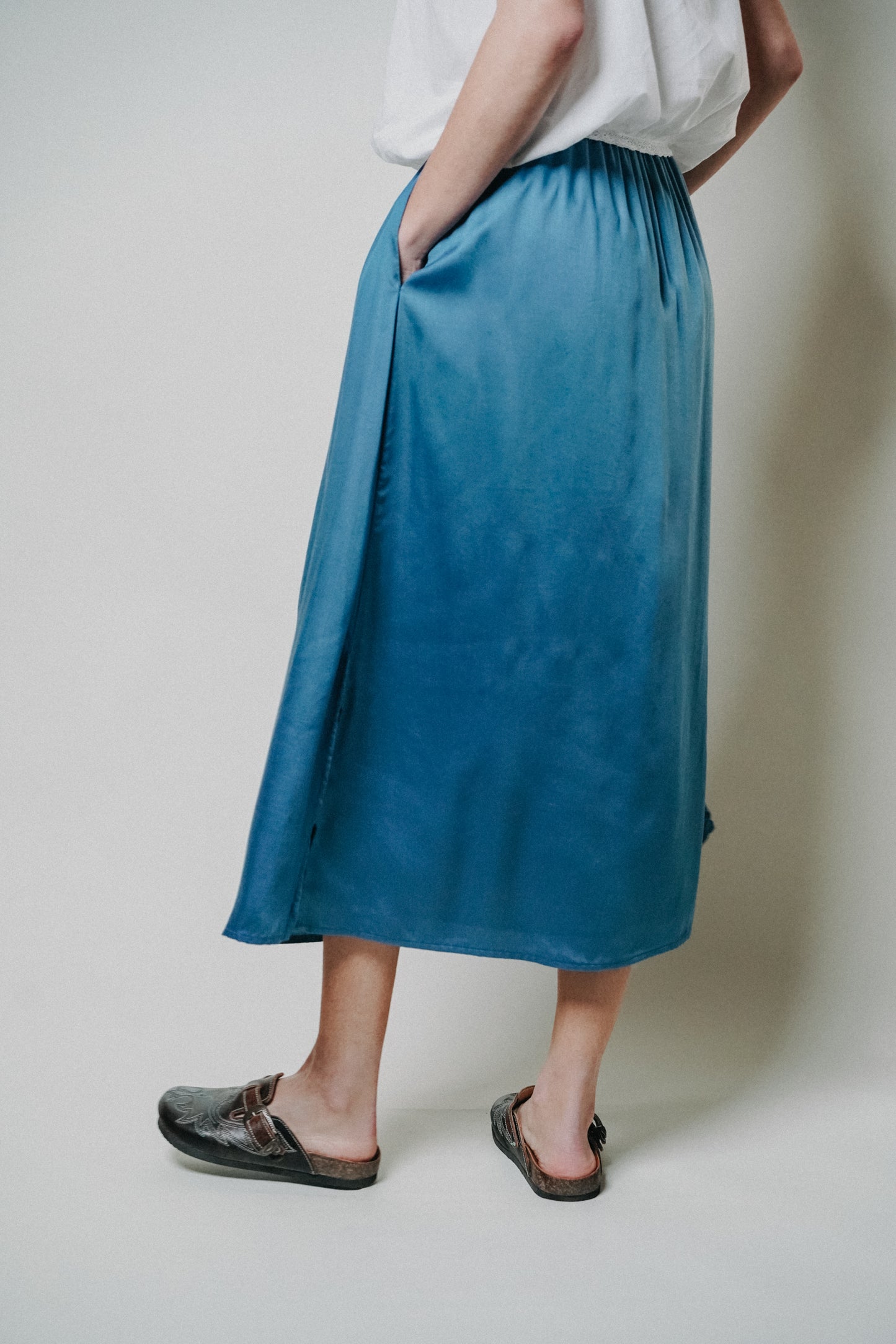 Jupe Longue en Soie Doublée Coton – Bleu Intense