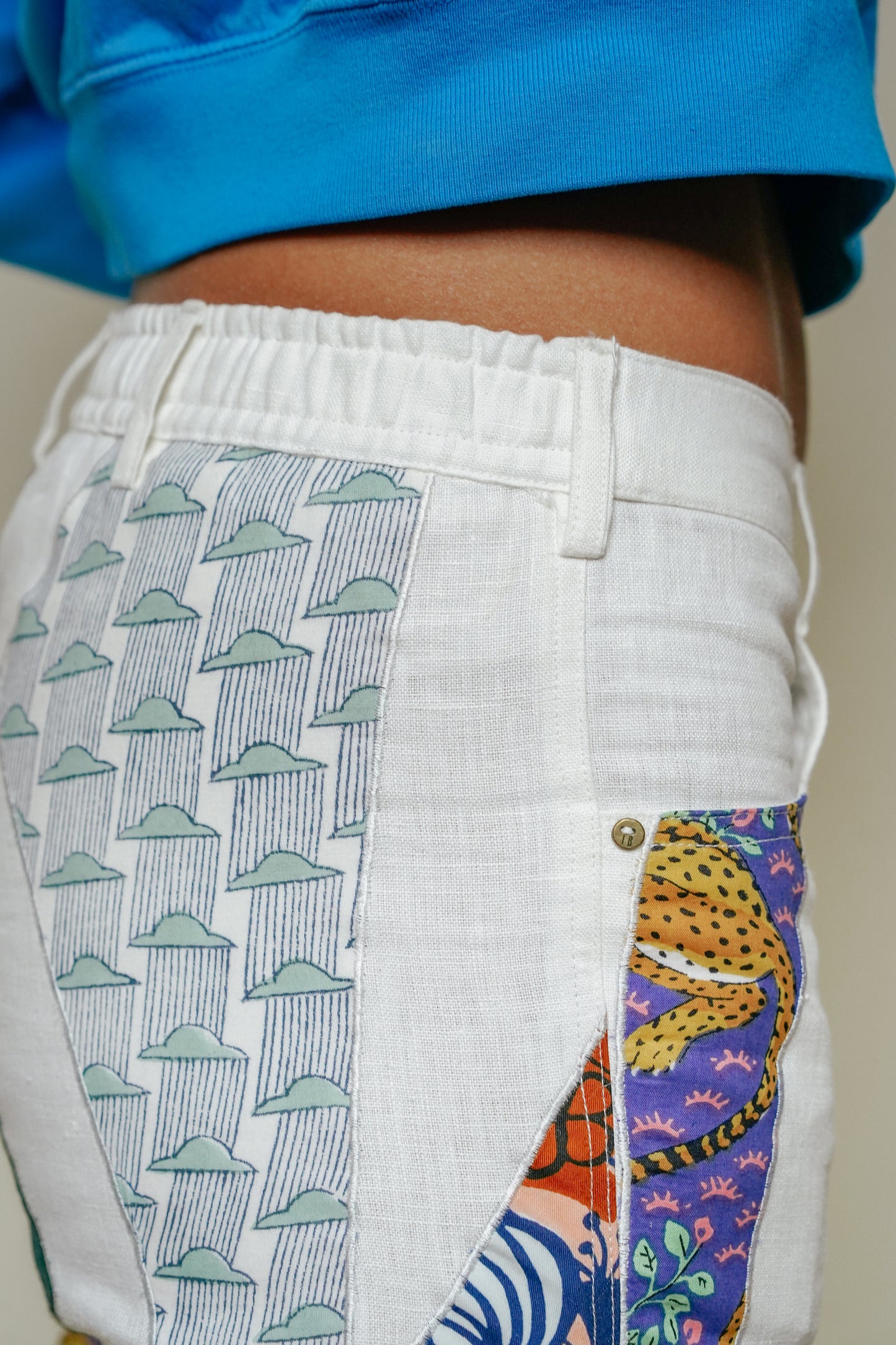 Pensé en France et conçu avec soin en Inde, ce pantalon en lin incarne la rencontre entre héritage textile et modernité. Sa coupe taille basse, courte et évasée reprend les lignes iconiques de nos pantalons en wax, offrant une silhouette féminine et affirmée.