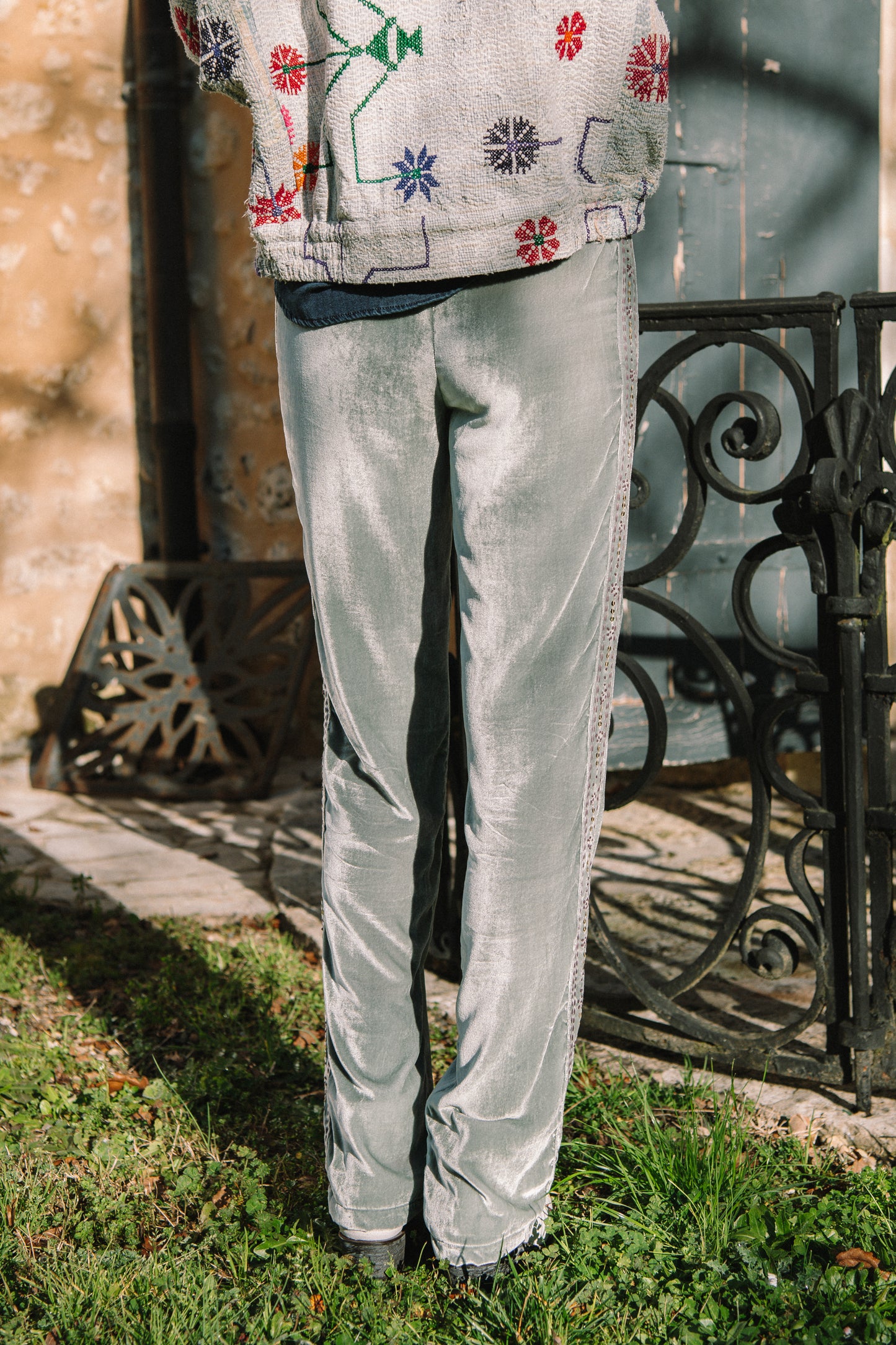 L'ÎLE BLEUE - Pantalon Sayani Embroidery Light Grey