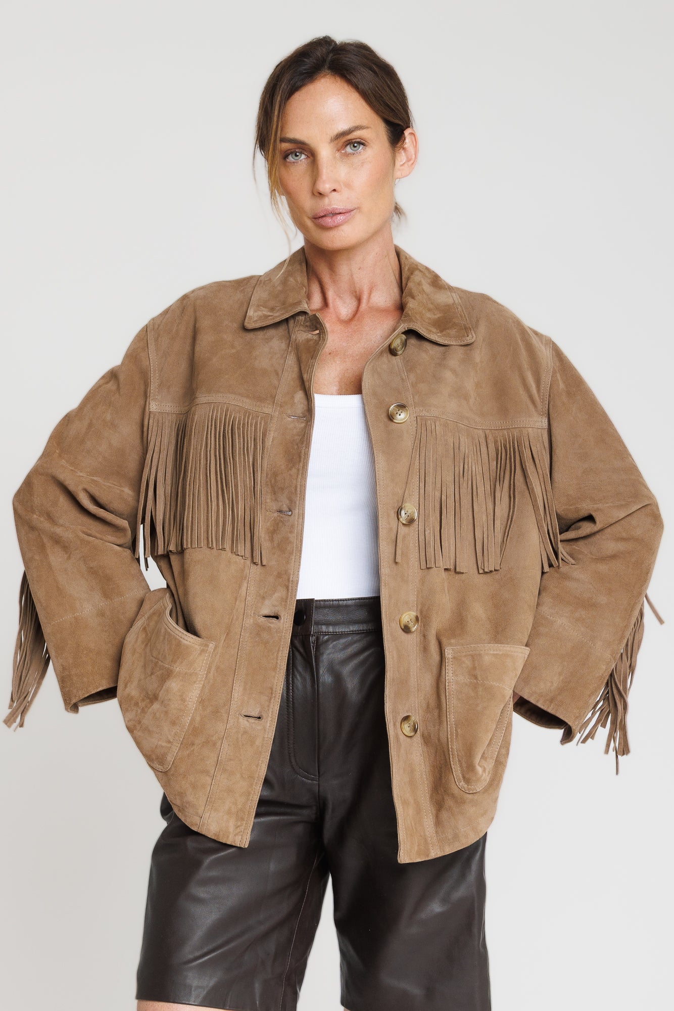 SERGE PARIENTE - VESTE EN CHÈVRE À FRANGES