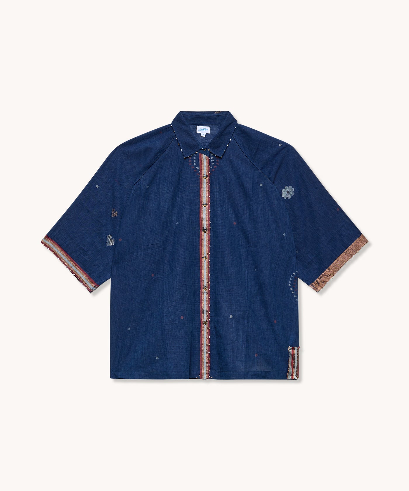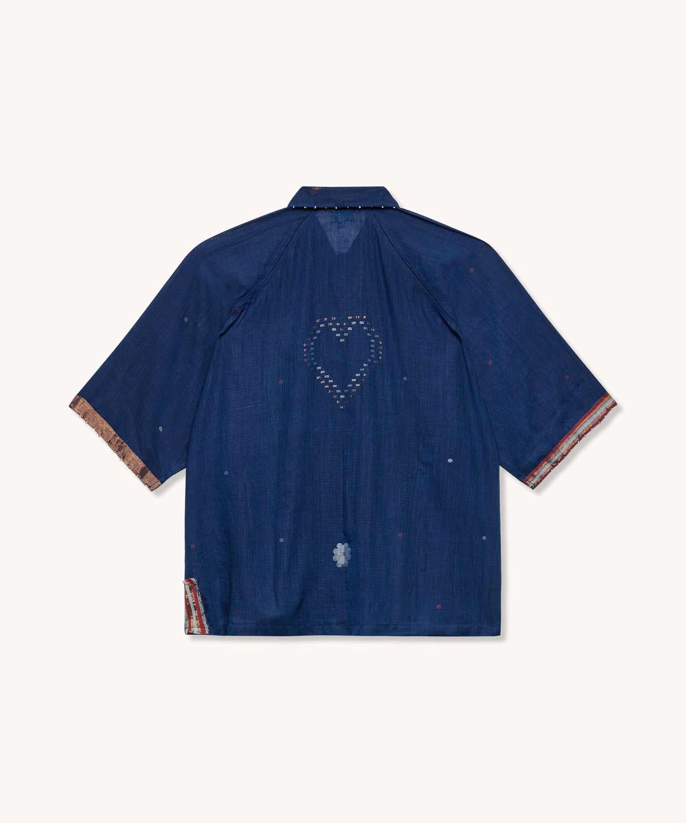 Découvrez la blouse oversize Nochon en 100 % coton jamdani, un tissu léger et respirant, entièrement tissé à la main selon un savoir-faire artisanal ancestral indien.