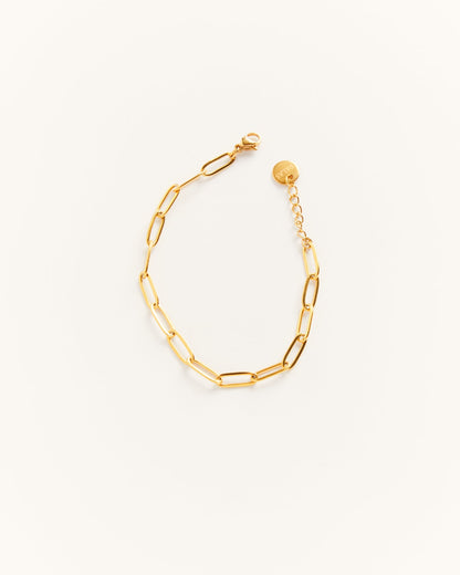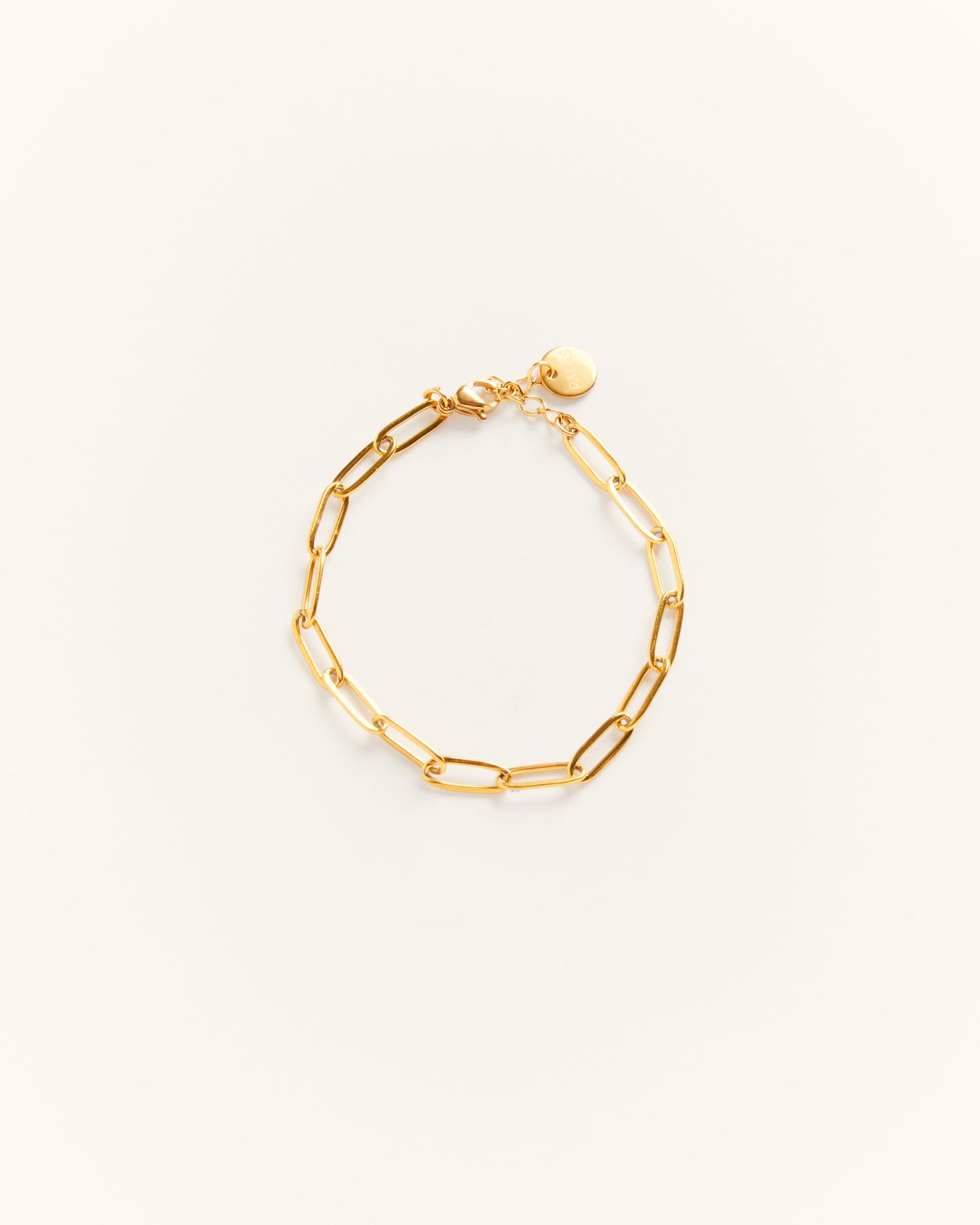 Le bracelet Juliet, un bracelet à maillons dorés subtils. Portez-le seul ou ajoutez-y une touche de charme.
