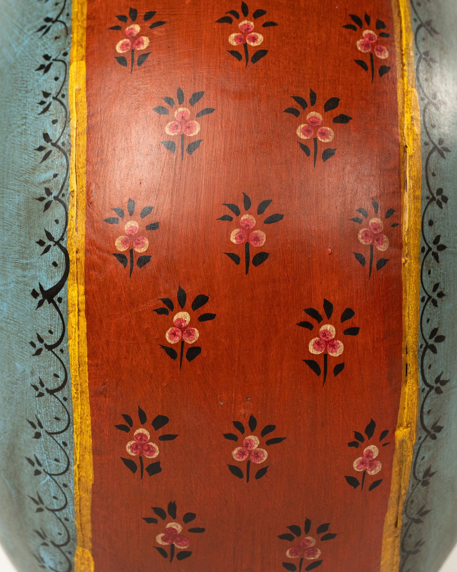 Faites entrer la couleur et l’élégance de l’art populaire indien dans votre intérieur avec ce magnifique pot décoratif en acier peint à la main. Réalisé par des artisans en Inde, il arbore des motifs floraux minutieusement appliqués, dans une composition symétrique aux accents traditionnels.